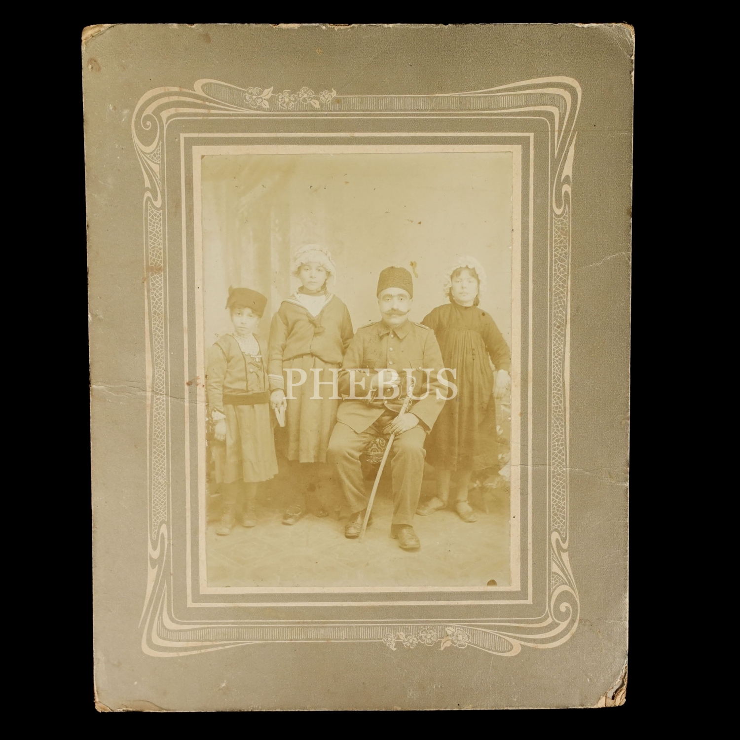Bir Osmanlı subayının kızlarıyla birlikte aldırdığı stüdyo hatıra fotoğrafı, fotoğraf 12x17 cm, paspartu 22x28 cm...