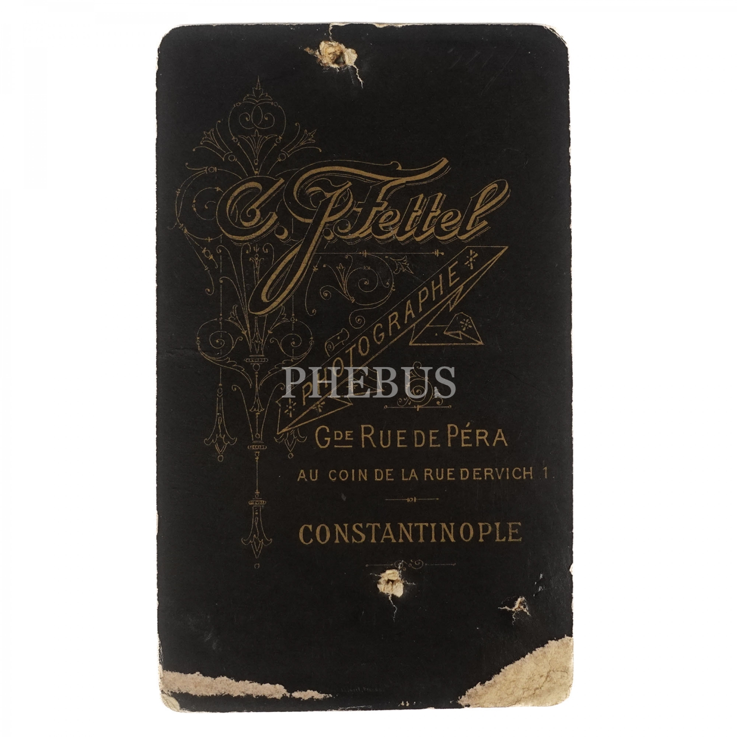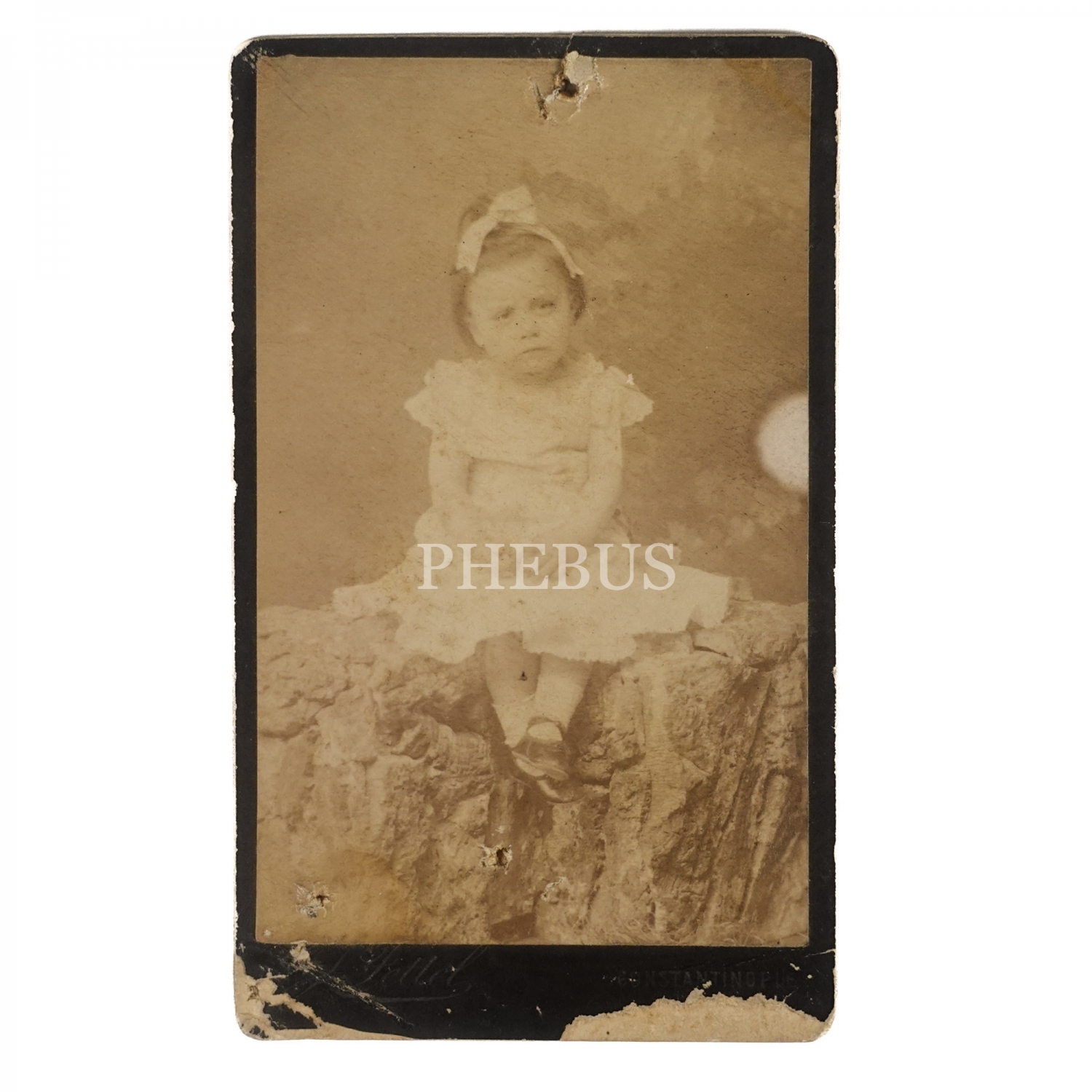 Küçük bir kız çocuğunun C. J. (Constantin Joseph) Fettel Fotoğrafhanesi´nde (Grand Rue de Pera, Constantinople) aldırdığı CDV (kartvizit) boy hatıra fotoğrafı, 6x11 cm...