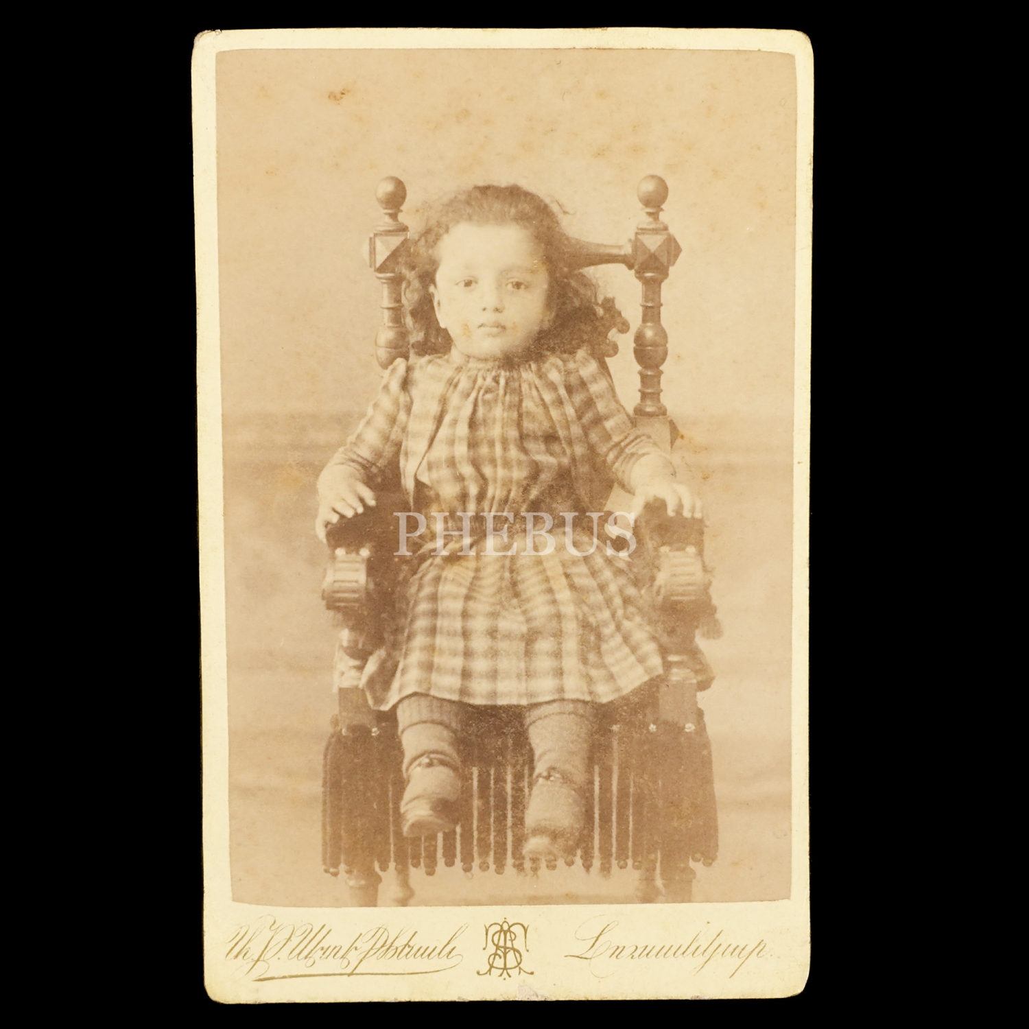 Küçük bir kız çocuğunun A. T. Sedefdjian Fotoğrafhanesi´nde (Scutari [Üsküdar]) aldırdığı CDV (kartvizit) boy hatıra fotoğrafı, 7x11 cm...