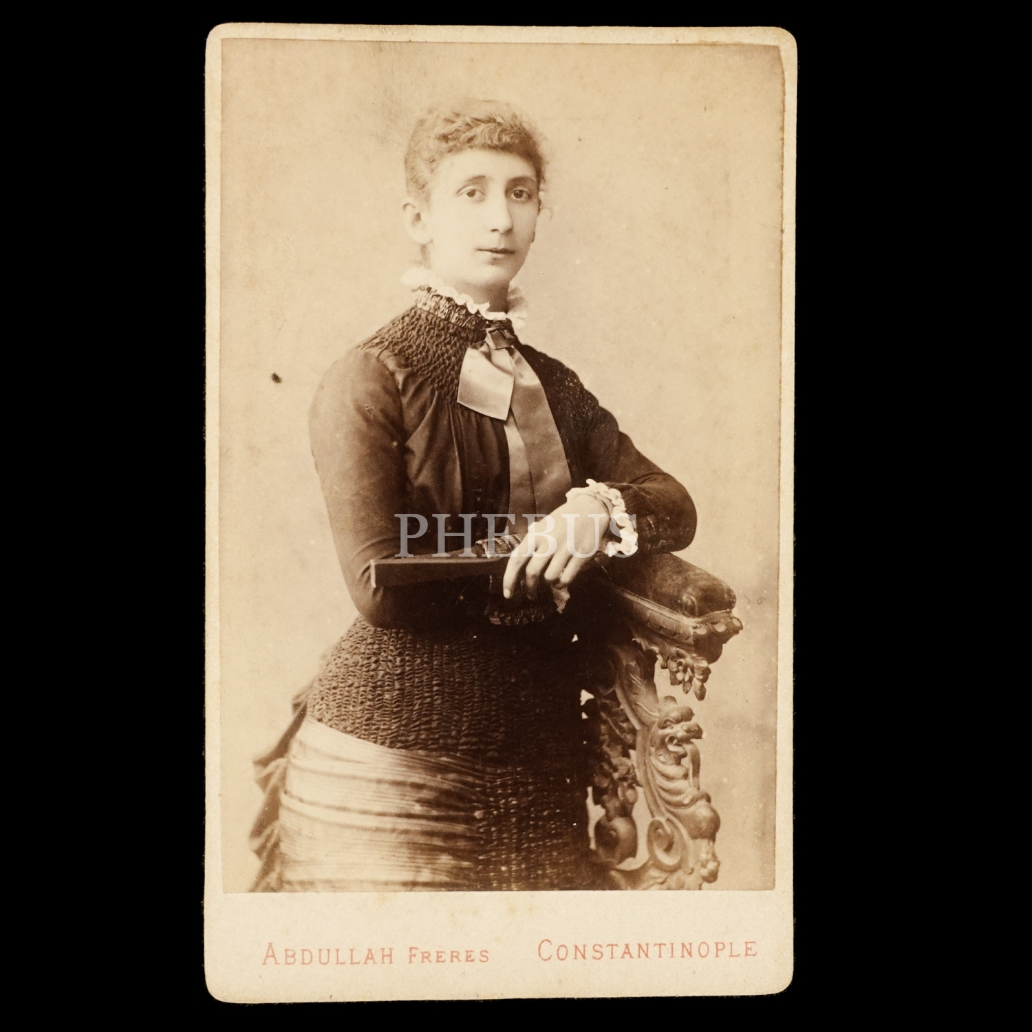 Levanten bir hanımefeninin Abdullah Freres Fotoğrafhanesi´nde (Constantinople) aldırdığı CDV (kartvizit) boy hatıra fotoğrafı, 6x11 cm...