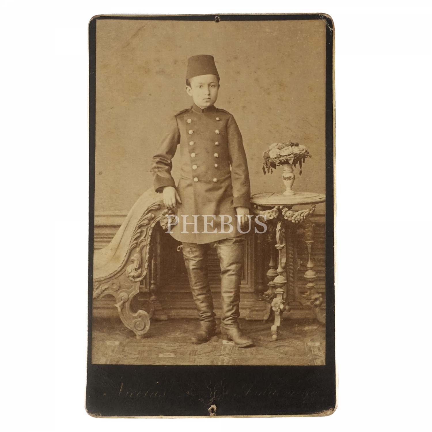 Bir askeri öğrencinin Nicolas Andriomenos Fotoğrafhanesi´nde (Sultan-Bayazid, Constantinople) aldırdığı CDV (kartvizit) boy hatıra fotoğrafı, 7x11 cm...