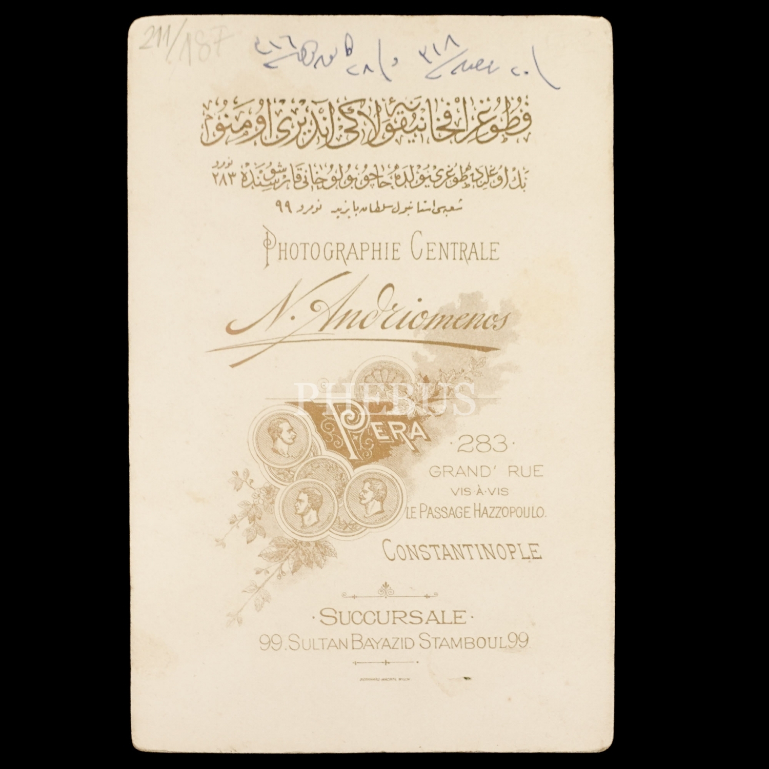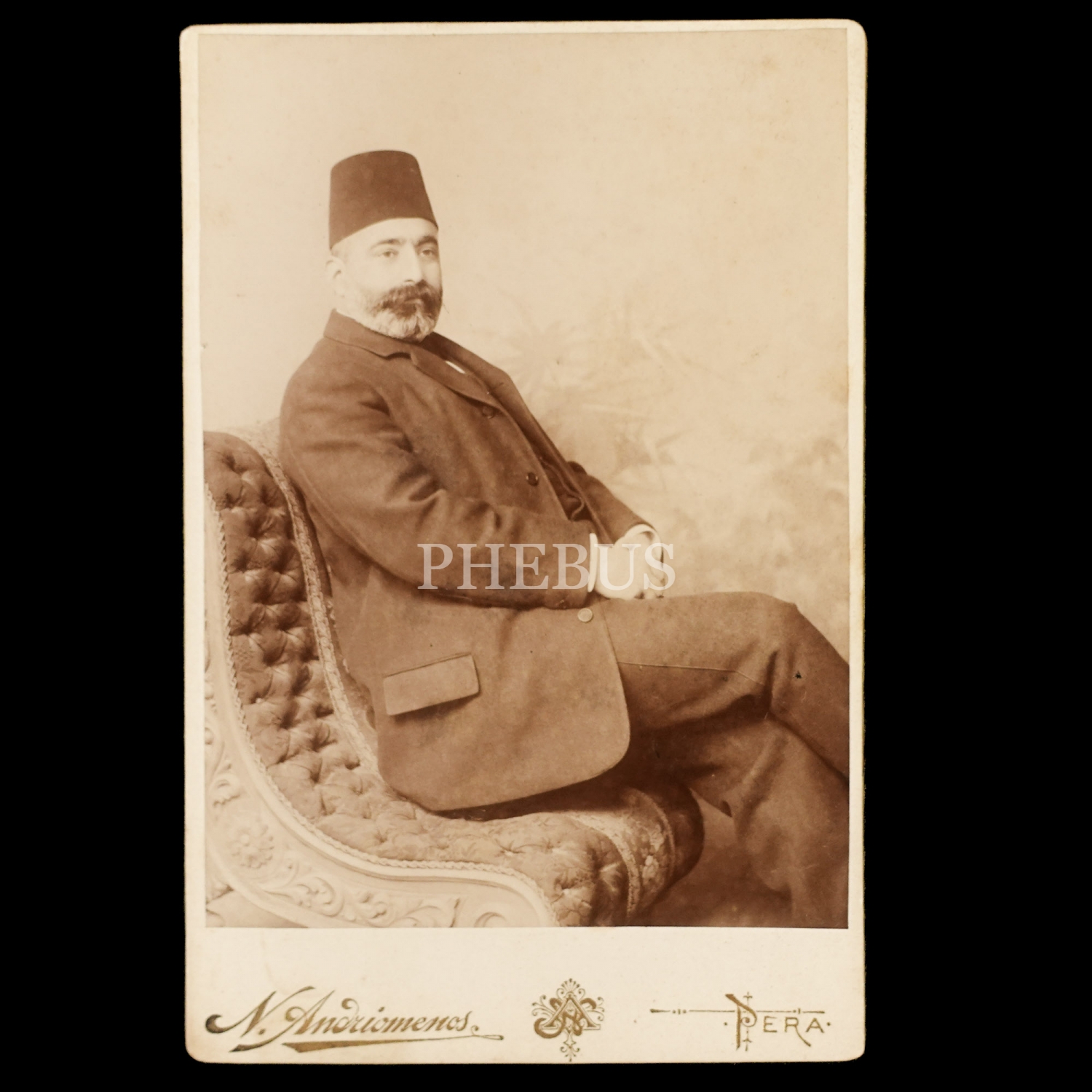 Bir beyefendinin Nicolas Andriomenos Fotoğrafhanesi´nde (Pera, Constantinople) aldırdığı kabin fotoğraf, 11x17 cm...