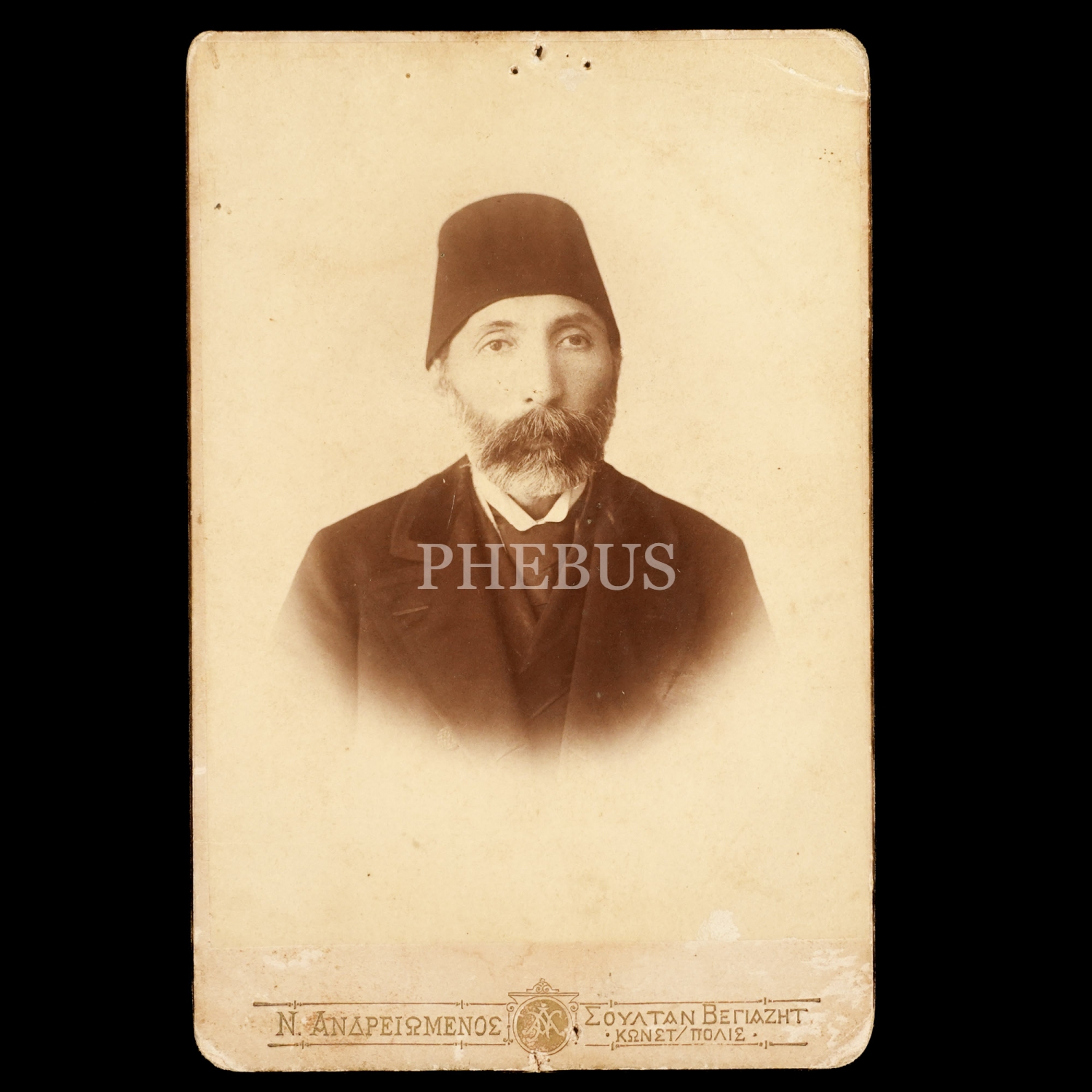 Bir beyefendinin Nicolas Andriomenos Fotoğrafhanesi´nde (Sultan-Bayazid, Constantinople) aldırdığı kabin fotoğraf, 11x17 cm...