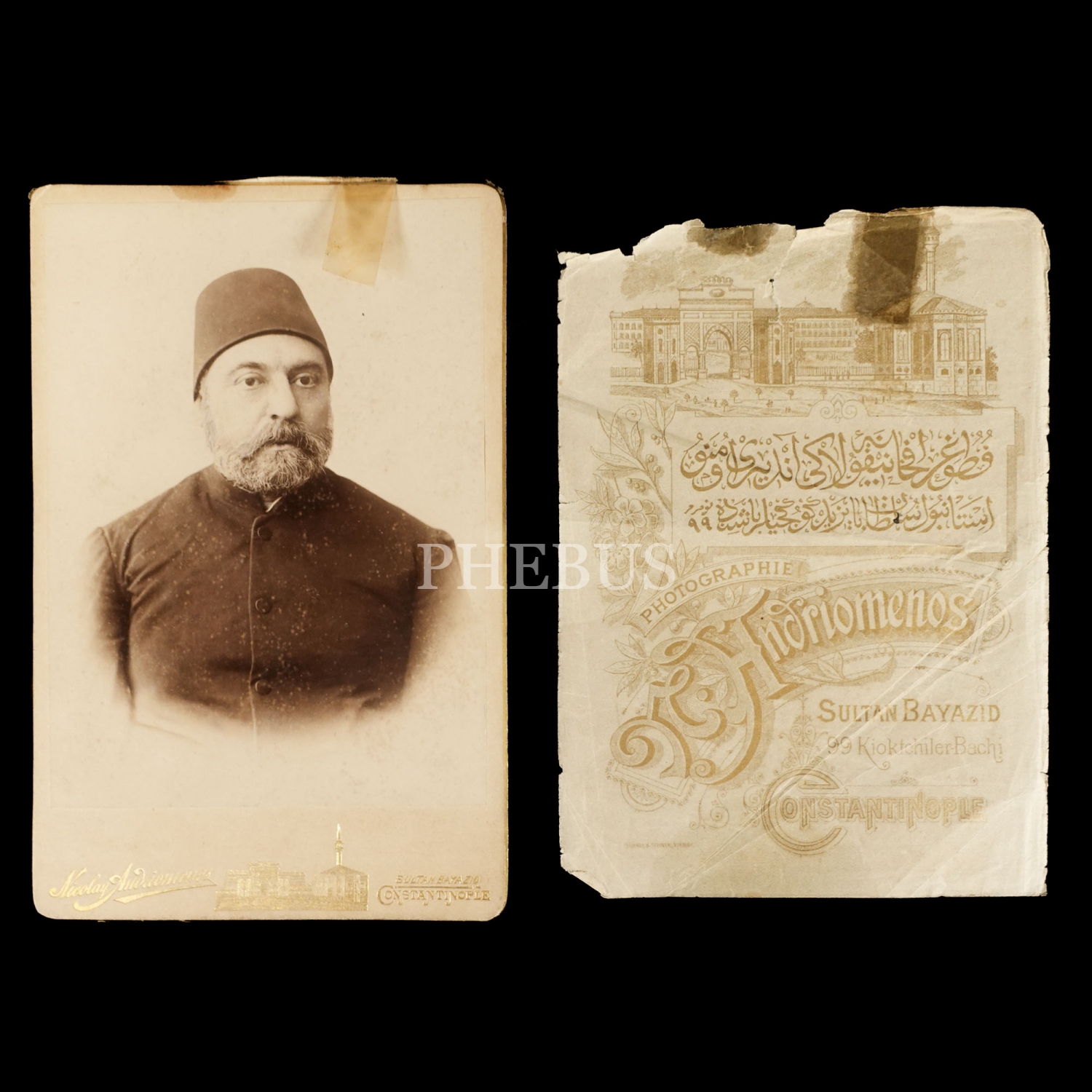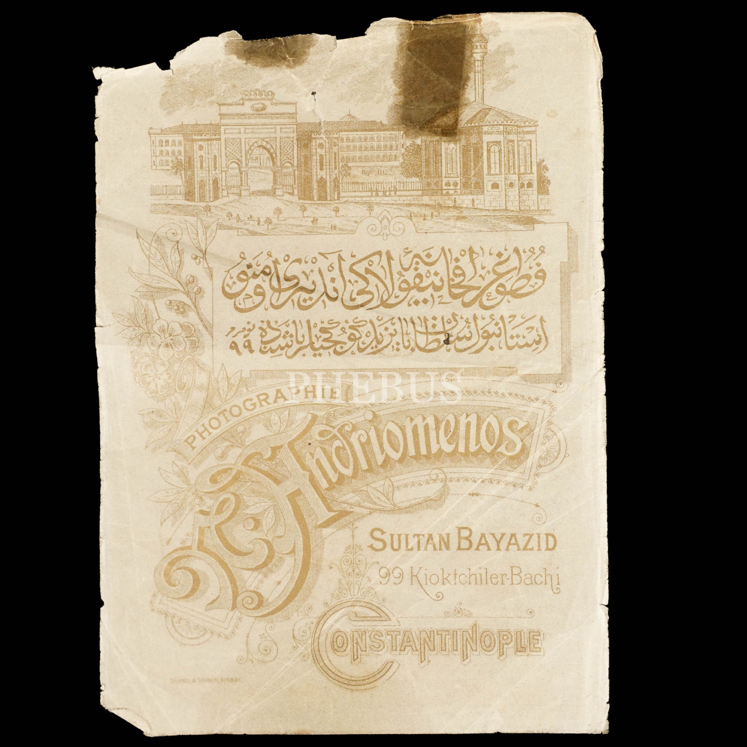 Bir beyefendinin Nicolas Andriomenos Fotoğrafhanesi´nde (Sultan-Bayazid, Constantinople) aldırdığı kabin fotoğraf, 11x17 cm...