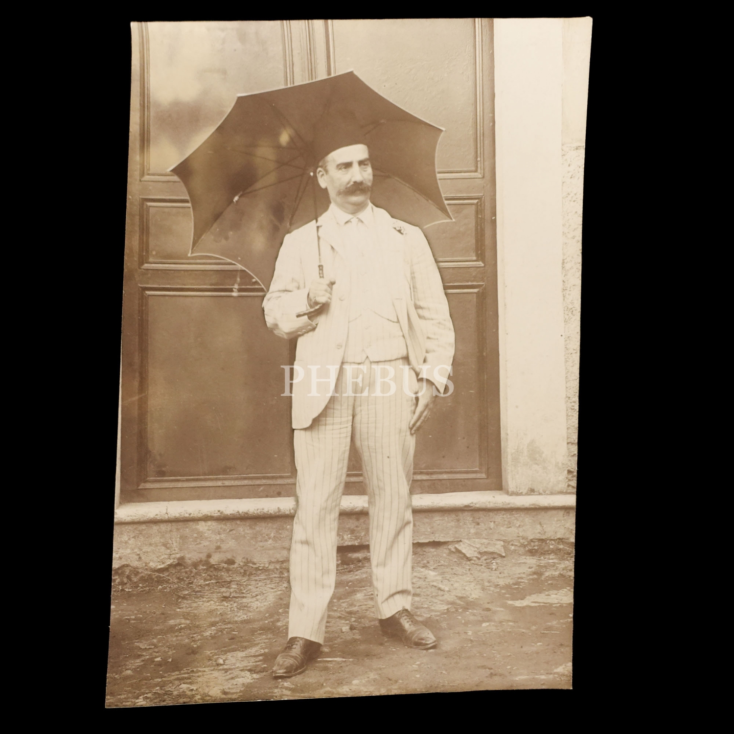 Şemsiyeli bir beyefendi, 11x16 cm...