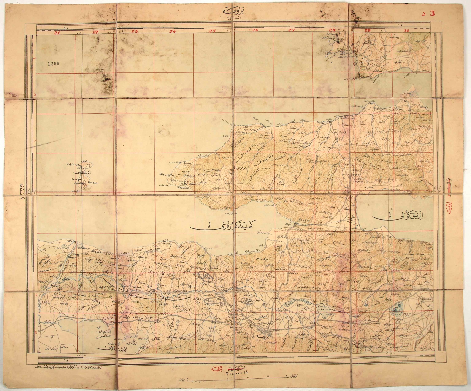 Osmanlıca Bursa haritası, haliyle, 60x50 cm