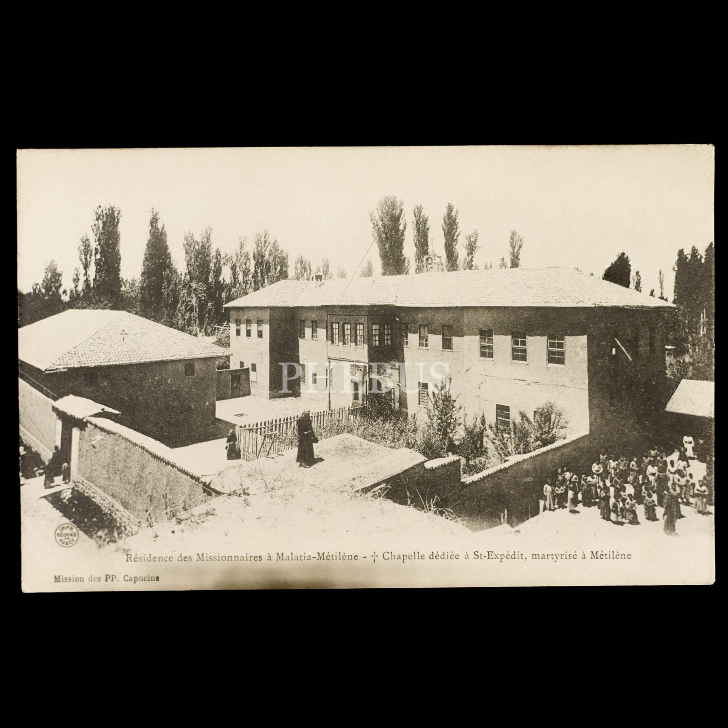 Malatya´da bulunan misyoner konutu ile Hıristiyanlığa geçtiği için Malatya´da şehit edilen Romalı yüzbaşı Aziz Expeditus´e adanan şapel, "Residence des Missionnaires a Malatia - Metilene / Chapelle dediee a St-Expedit, martyrise a Metilene", ed. Impr. Reunies de Nancy, 14x9 cm...