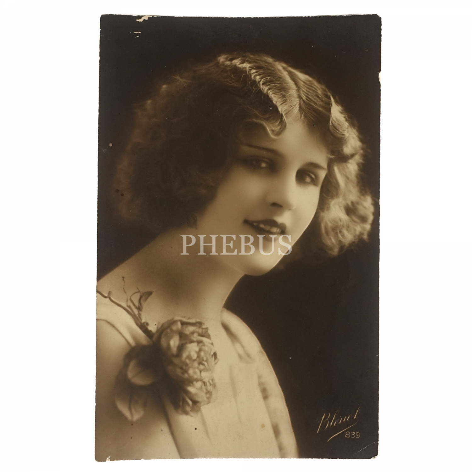 "Türk Tayyare Cemiyeti Piyango Biletleri Bayii - Taceddin" damgasının yer aldığı Fransız güzeli görselli kartpostal, 14x9 cm...