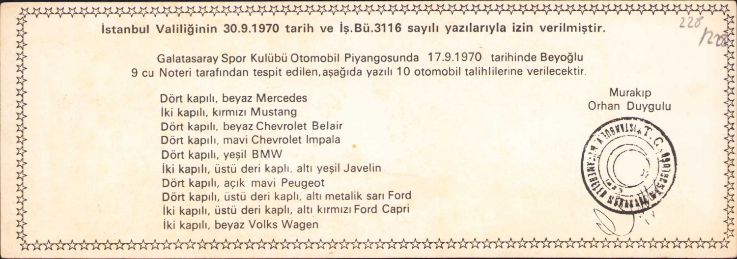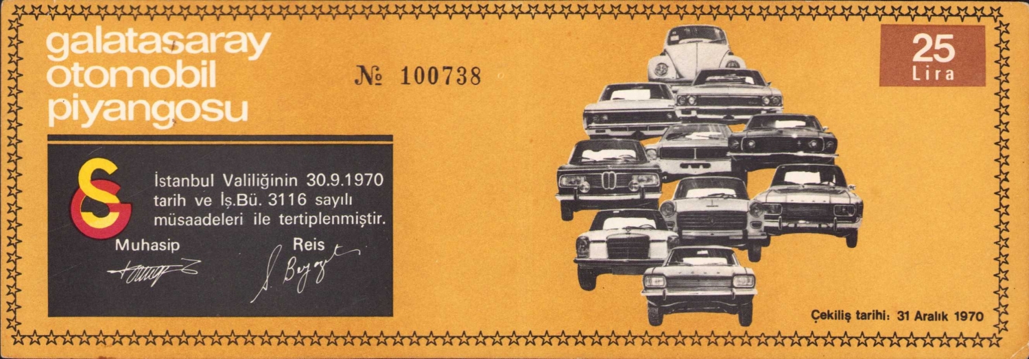 Galatasaray Otomobil piyango bileti, 22x7 cm