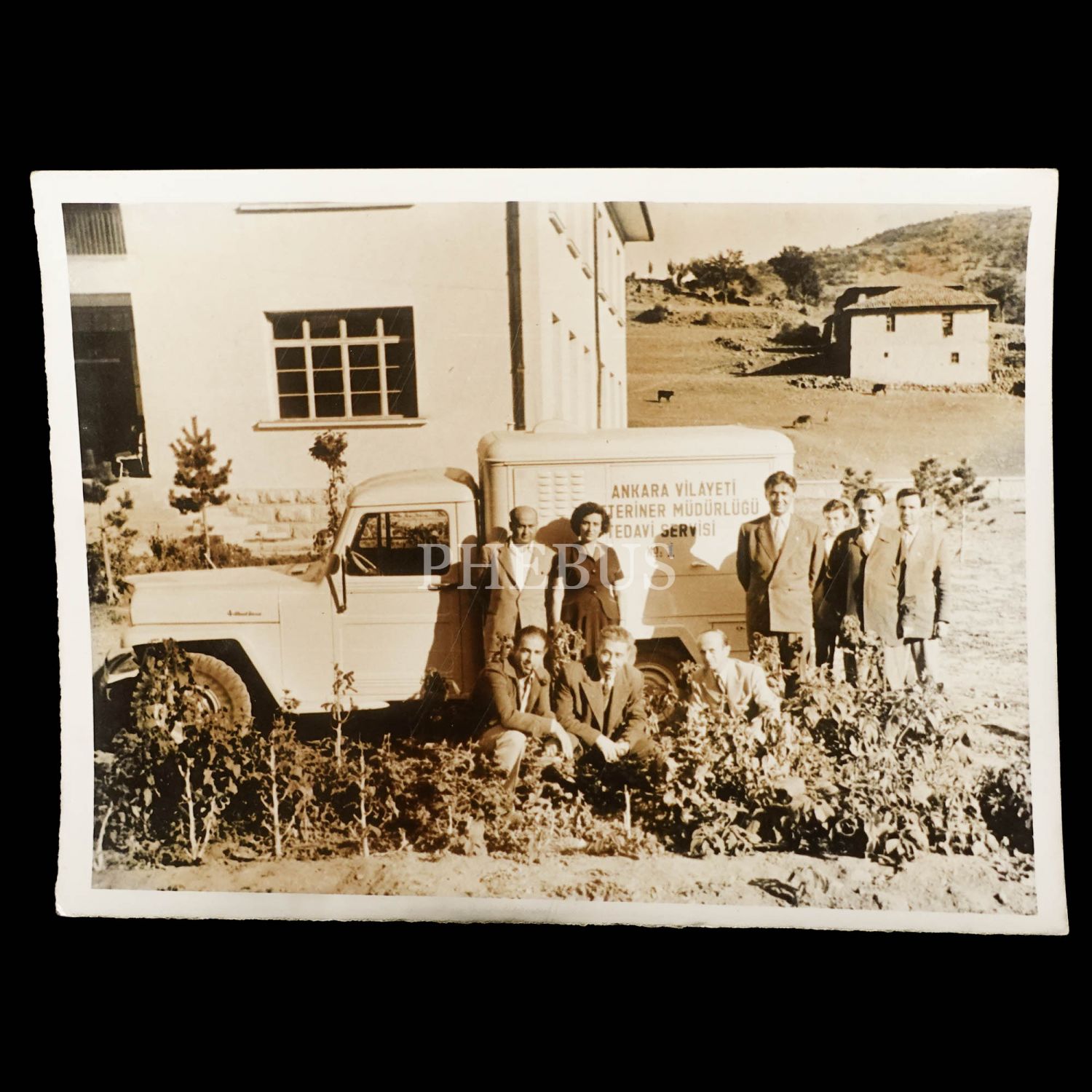 "Ankara Vilayeti Veteriner Müdürlüğü Tedavi Servisi No. 1" yazılı kamyonet önünde hatıra fotoğrafı, 12x9 cm...