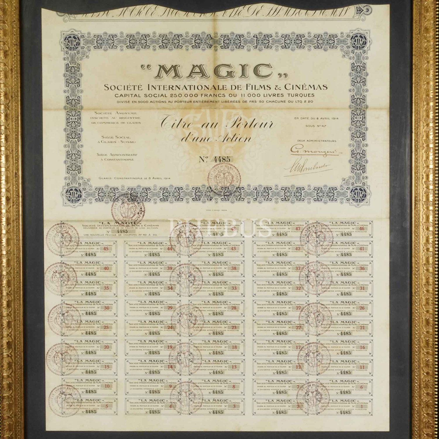 "Magic Société international de Films et Cinémas" şirketinin hisse senedi, paspartusuyla birlikte 53x63 cm...