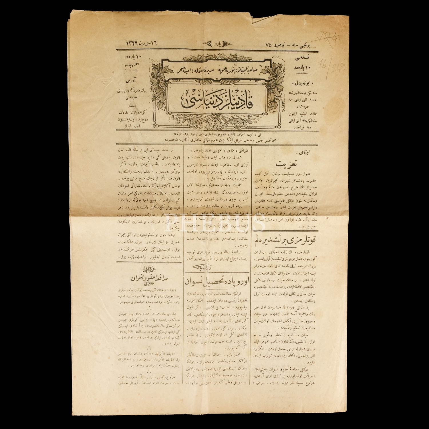 KADINLAR DÜNYASI gazetesinin 12 Haziran 1329 tarihli nüshası, 29x41 cm...