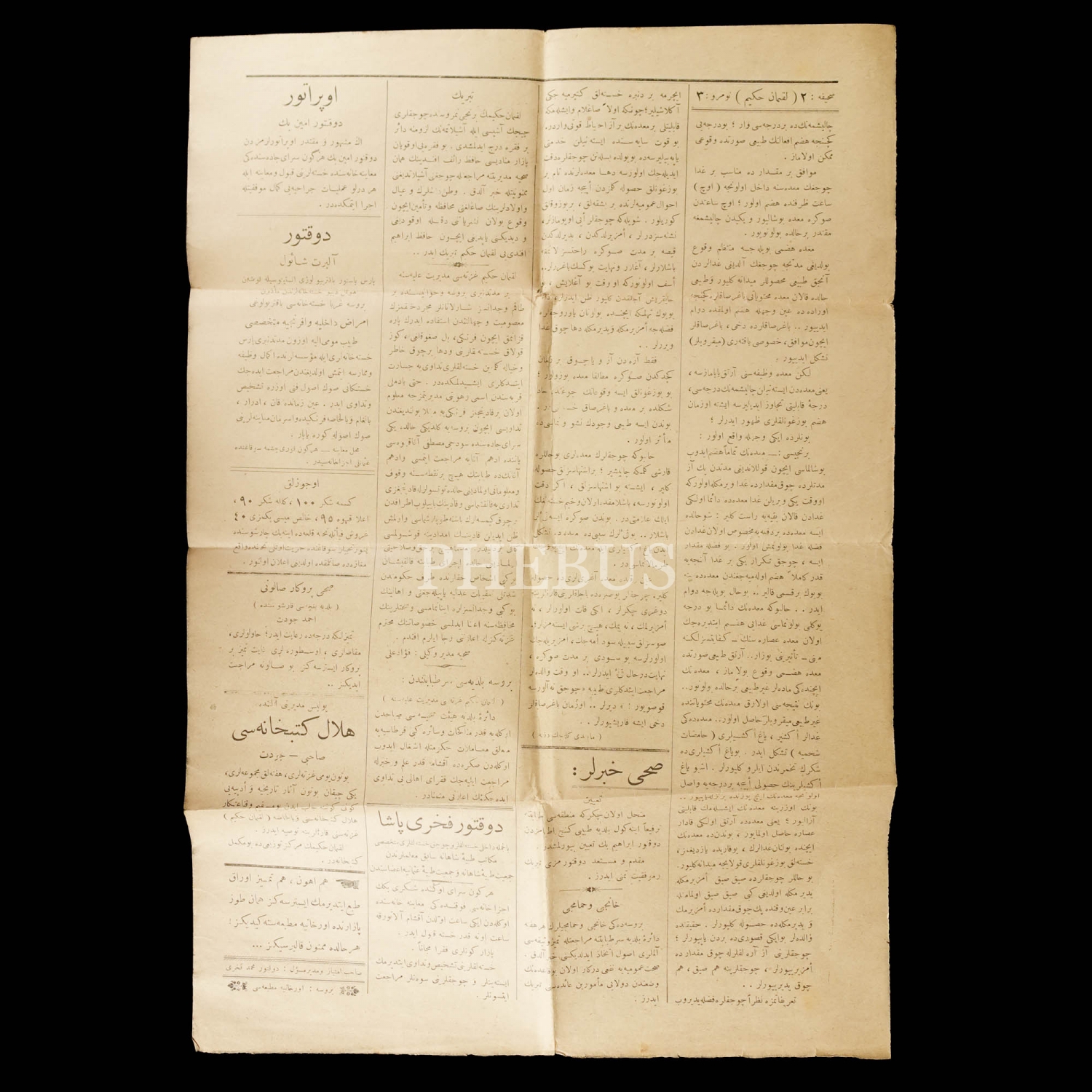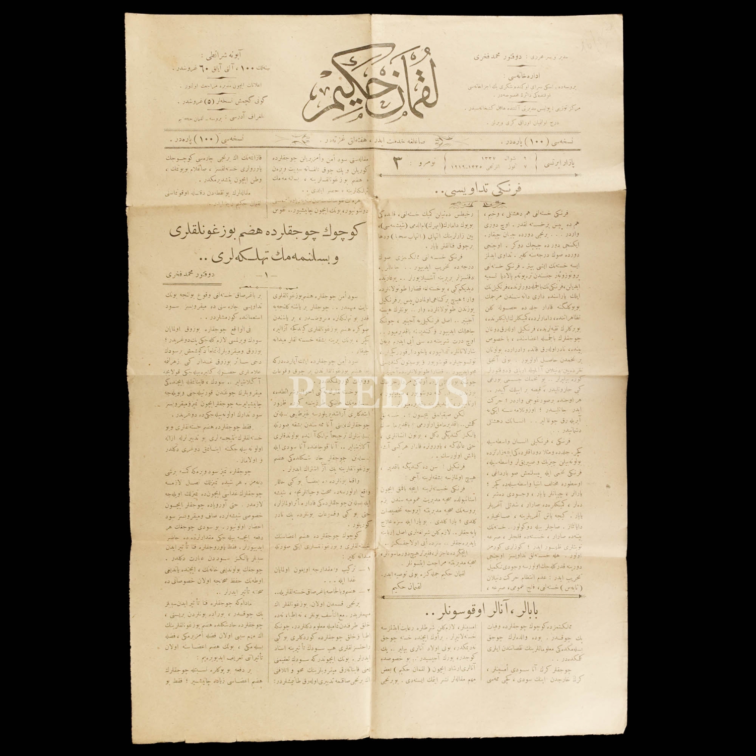 LOKMAN HEKİM gazetesinin 9 Şevval 1337 tarihli nüshası, 30x45 cm...