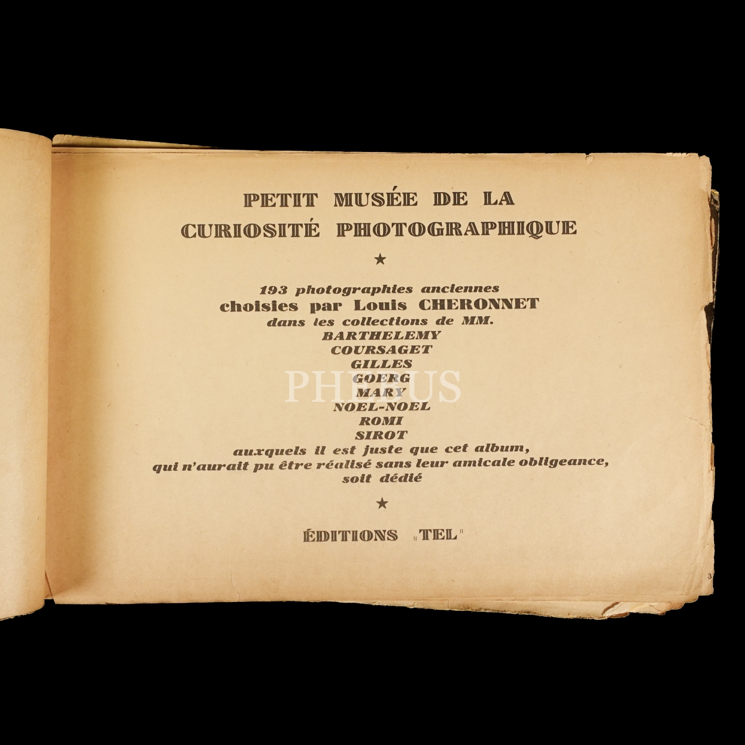 PETIT MUSEE DE LA CURLOSITE PHOTOGRAPHIQUE, Louis Cheronnet, 1945, Editions Tel, 126 sayfa, 27x18 cm...
