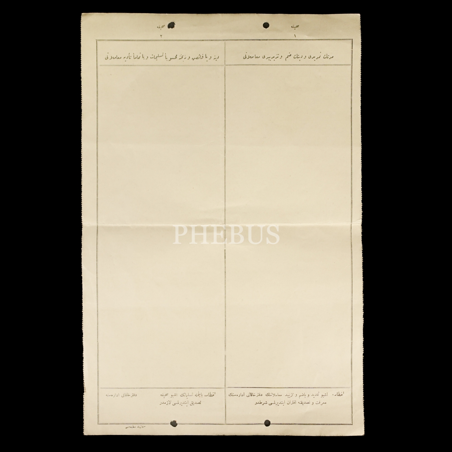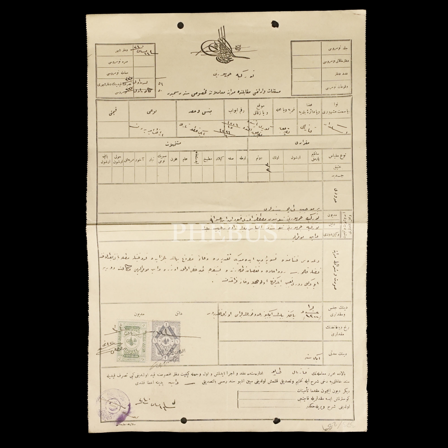 Sultan Mehmed Reşad tuğrasının üzeri çizilerek "Türkiye Cumhuriyeti" ibaresi not düşülen, Üsküdar´da bulunan bir araziye ait tapu senedi, 24x37 cm...