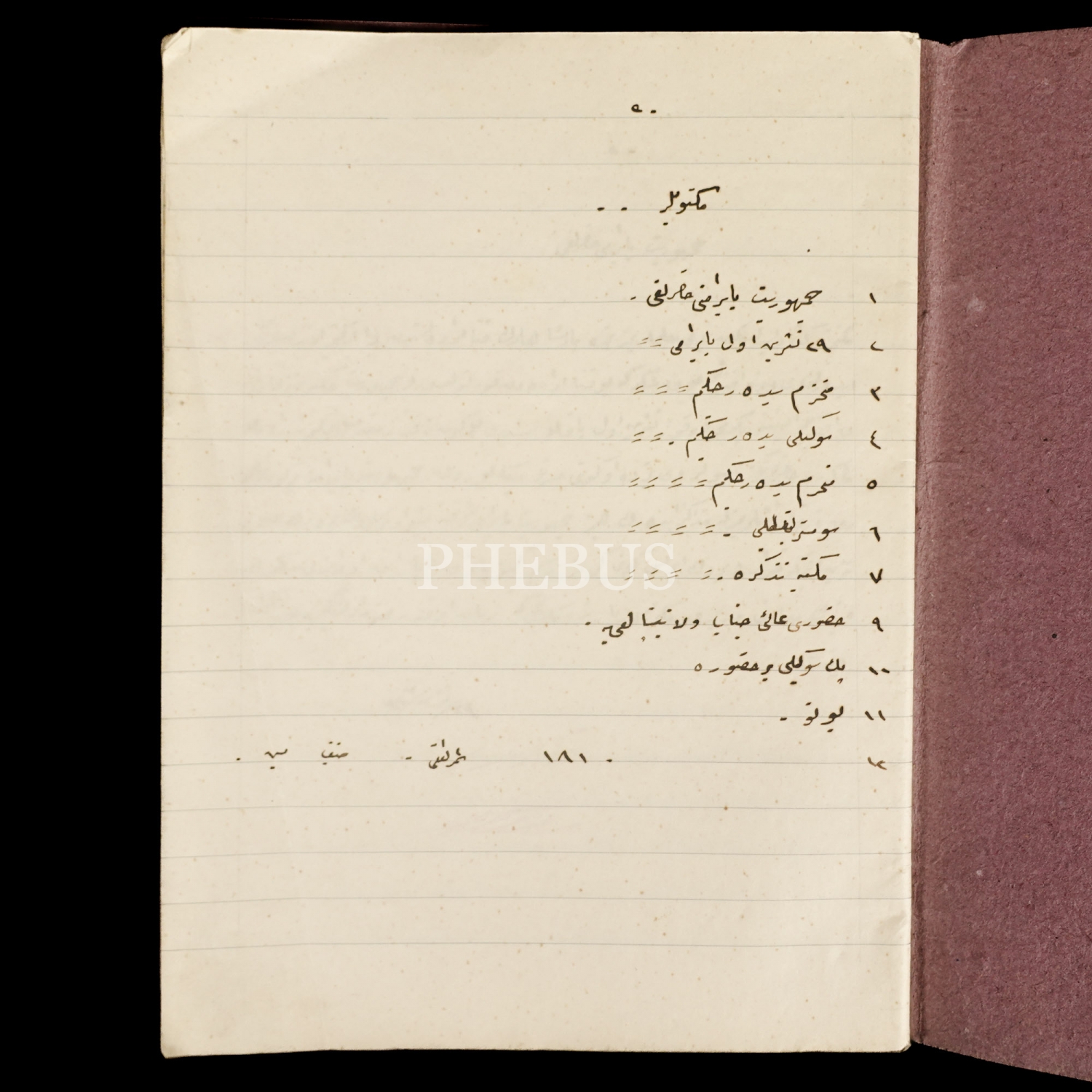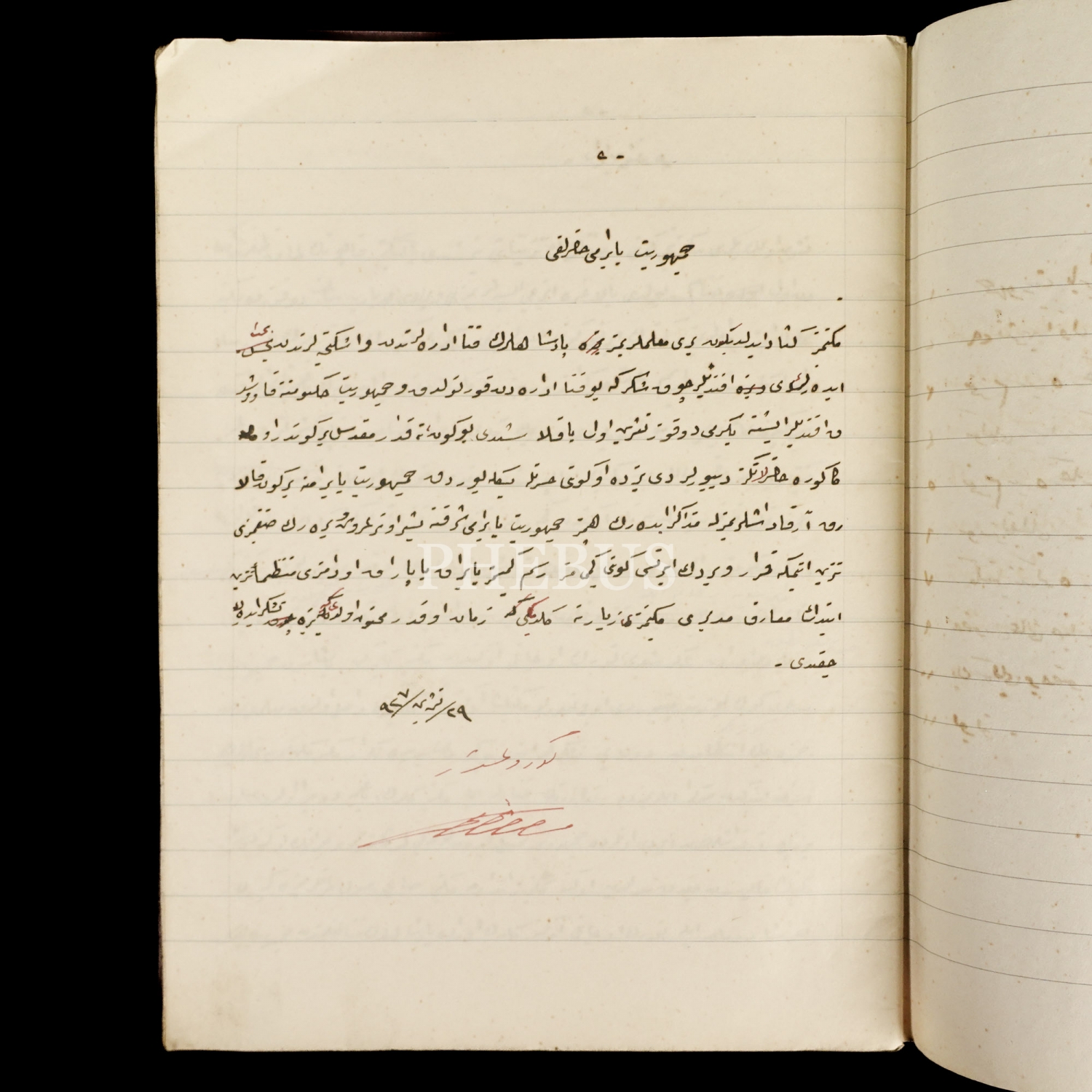 Defterde, öğrencinin kaleme aldığı "Cumhuriyet Bayramı hazırlığı", "29 Teşrinevvel Bayramı", "Muhterem Pederciğime", "Çok Sevgili Bir Huzura" gibi başlıklara sahip 11 adet mektup örneği ve öğretmeninin kırmızı kalemle yaptığı düzeltmeler ile "görülmüştür" yazısı altına attığı imzası yer almaktadır.
