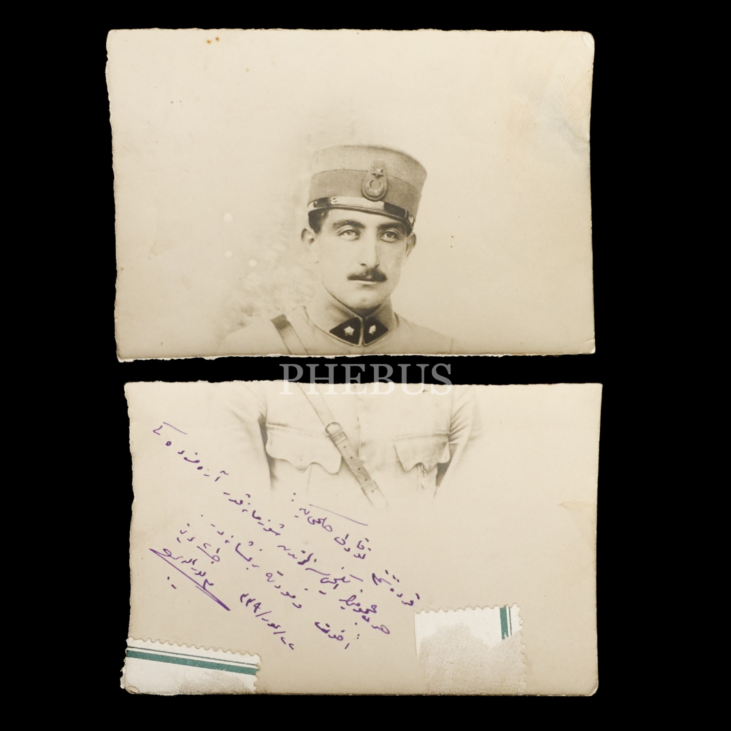 Osmanlı subayının, Birinci Dünya Savaşı´nda beraber savaştığı arkadaşına ithaf ettiği imzalı fotoğrafı, 14x9 cm...