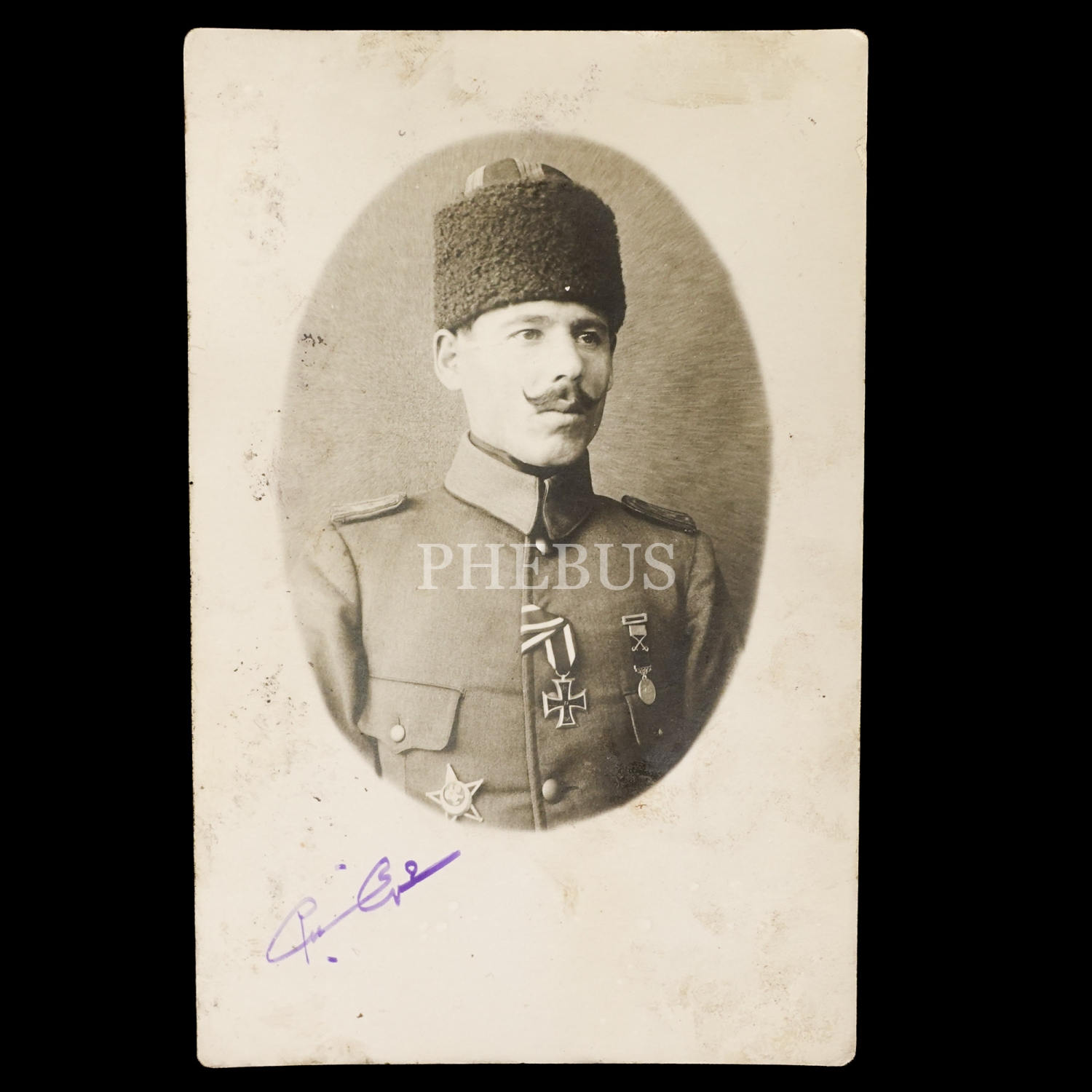 Osmanlı subayının ithaflı ve imzalı hatıra fotoğrafı, 14x9 cm...