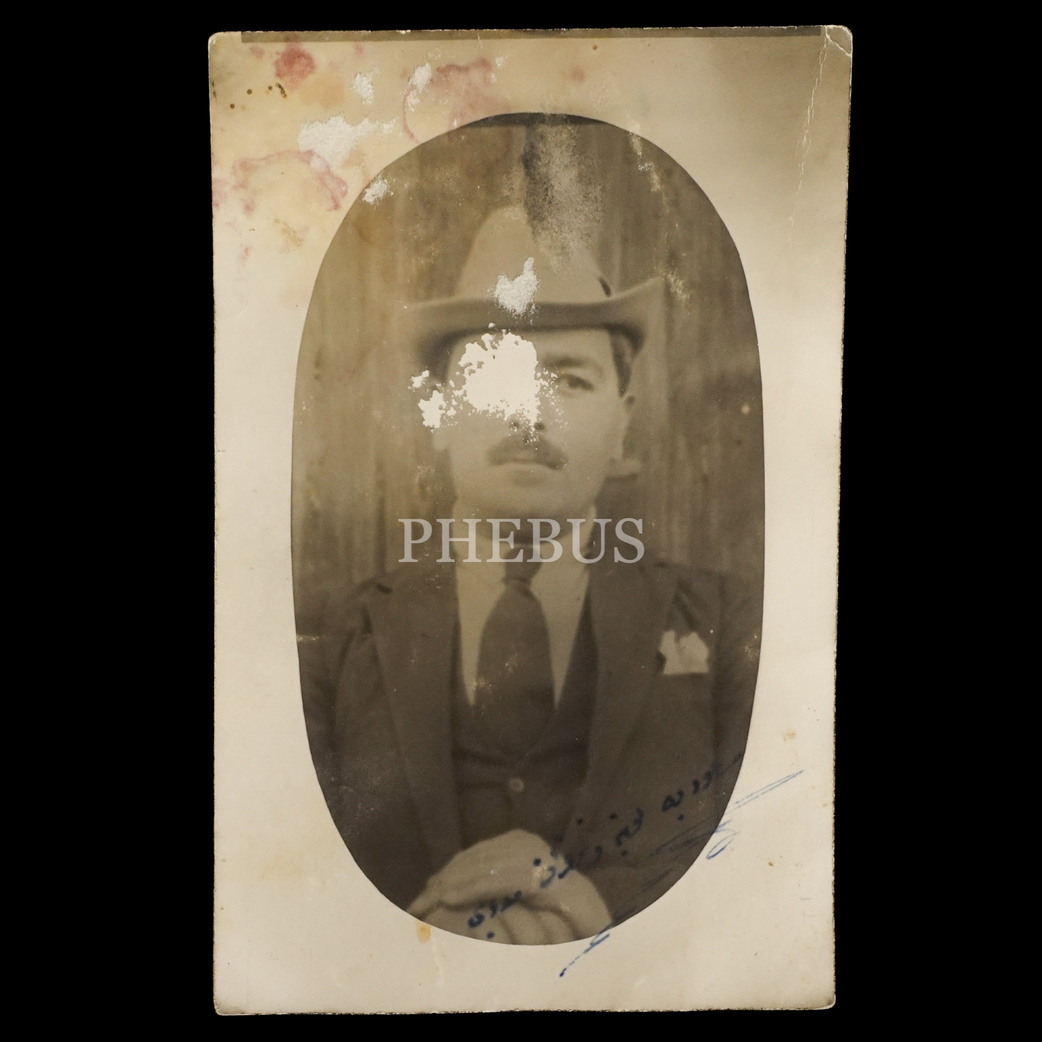 Şık giyimli bir beyefendinin ithaflı ve imzalı fotoğrafı, 14x9 cm...