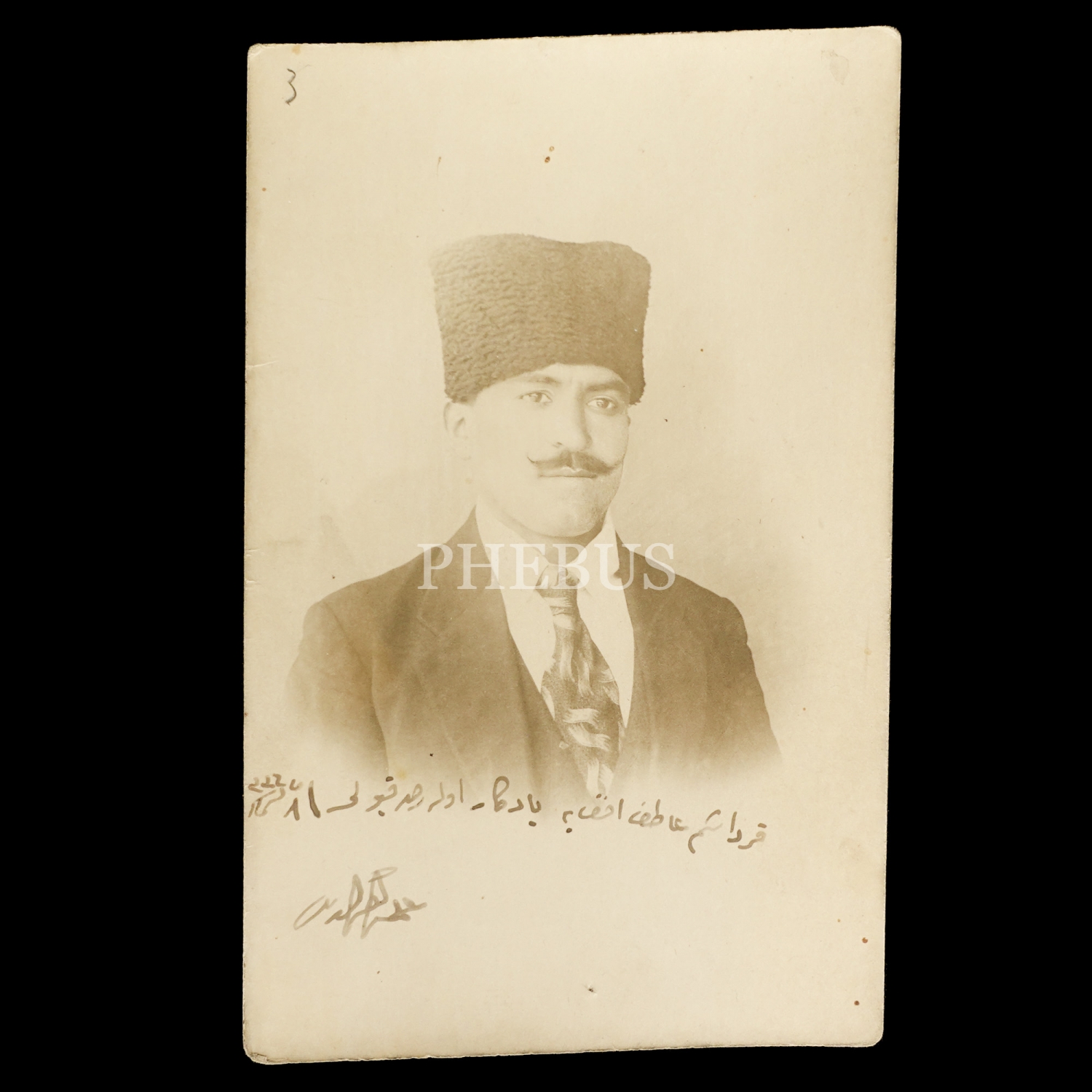 Kalpaklı beyefendinin hatıra fotoğrafı, 14x9 cm...