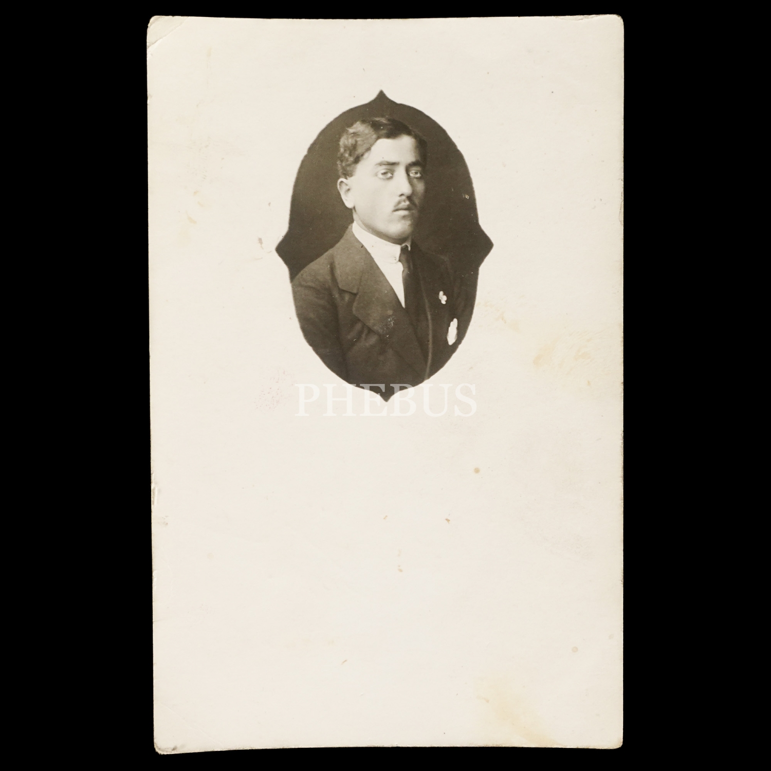 Osmanlı subayının, Seydibeşir Esir Kampı´ndaki esaret arkadaşına ithaflı ve imzalı hatıra fotoğrafı, 14x9 cm...