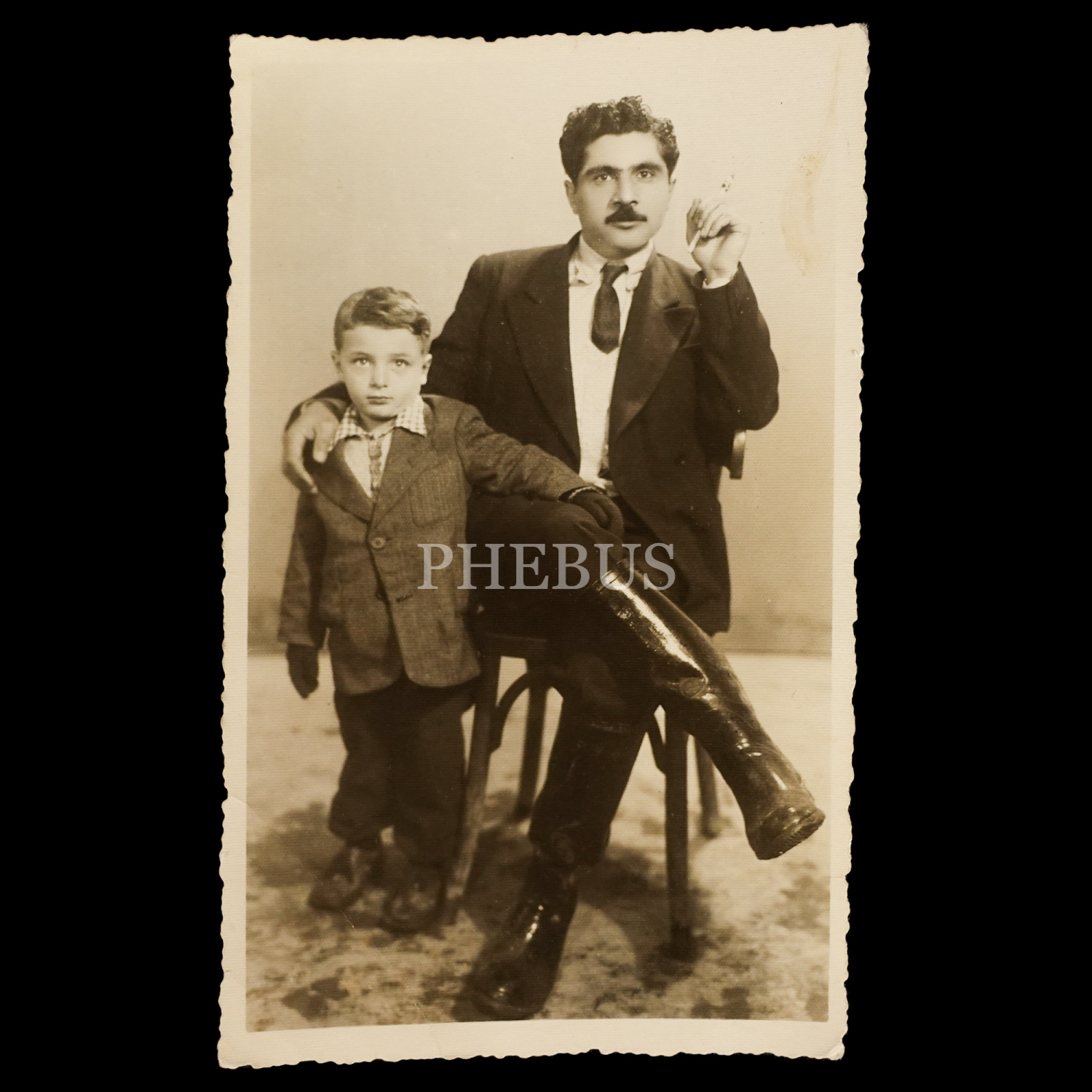 Şık giyimli bir beyefendi ve oğlunun hatıra fotoğrafı, 14x9 cm...