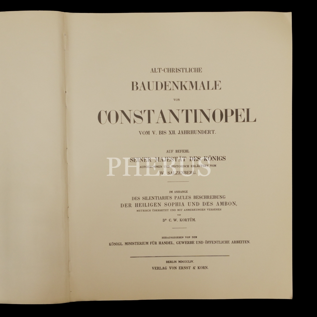 ALT-CHRISTLICHE BAUDENKMALE VON CONSTANTINOPEL (Vom V. Bis XII. Jahrhundert), Seiner Majestat Des Königs, 1854, Verlag Von Ernst & Korn, Berlin, 140 sayfa, 27x35 cm...