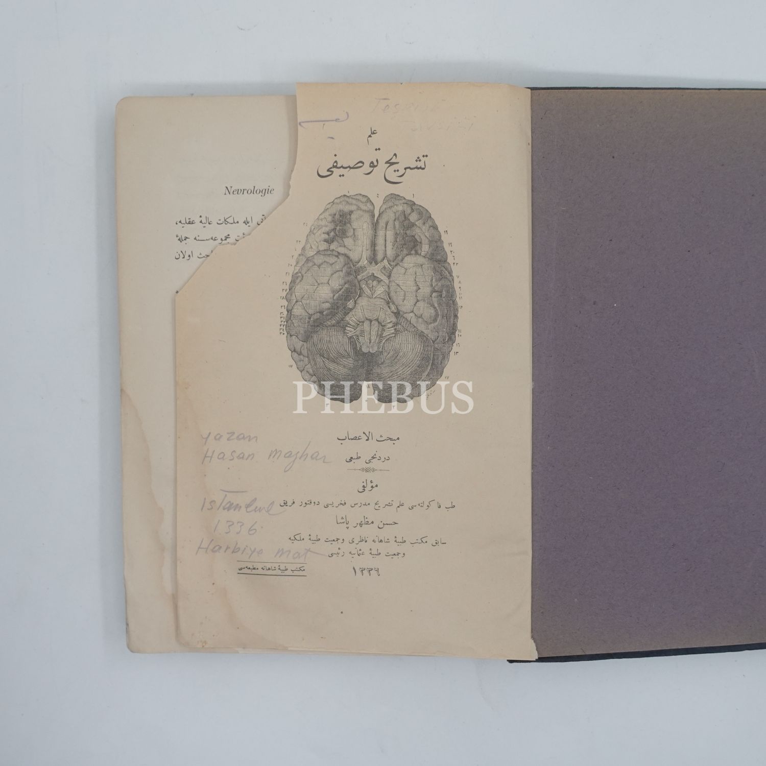 İLM-İ TEŞRİH-İ TAVSİFÎ - MEBHASÜ´L A´SAB, Hasan Mazhar Paşa, 1336, Mekteb-i Tıbbiye-i Şahane Matbaası, 408 sayfa, 23x16 cm...
