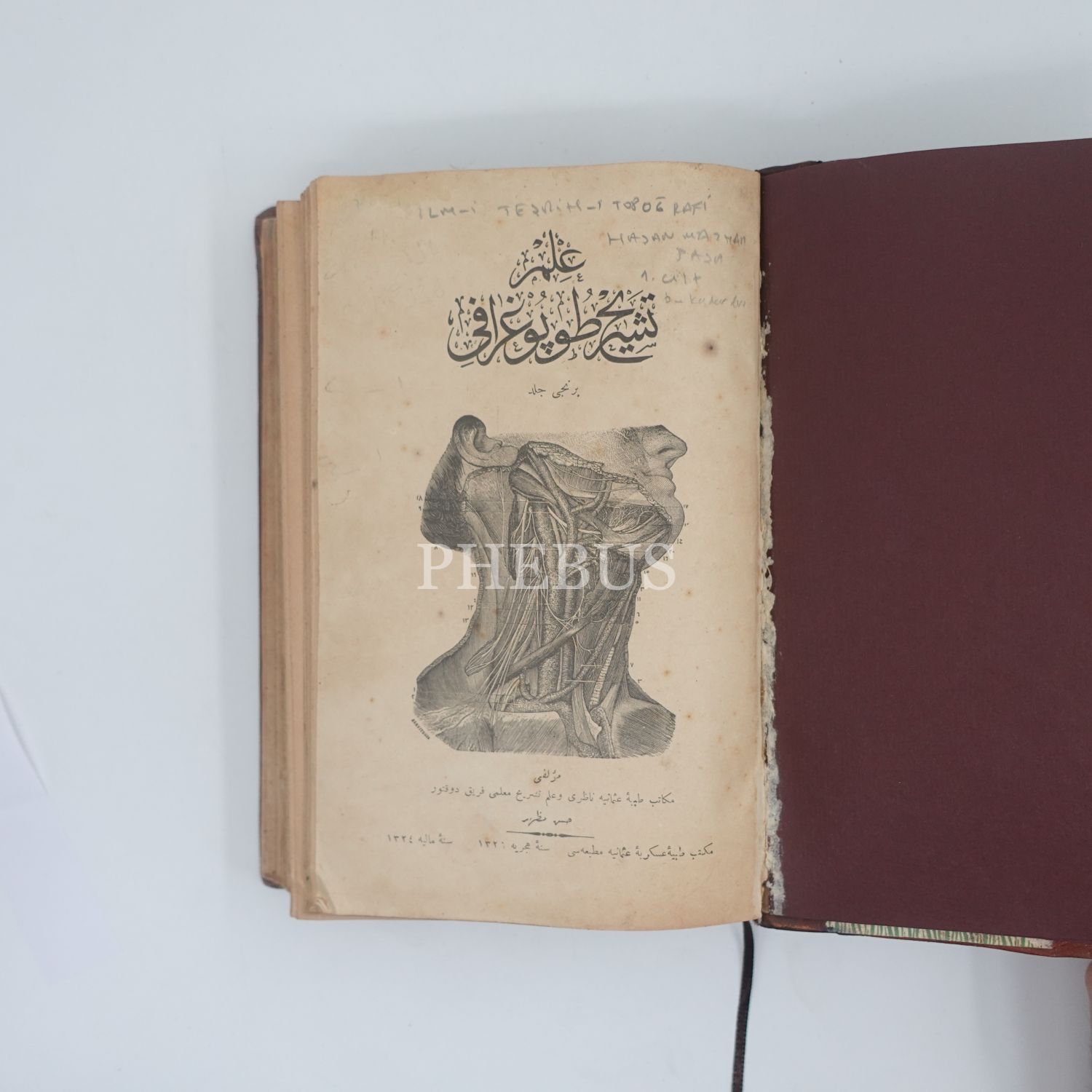 İLM-İ TEŞRİH-İ TOPOGRAFÎ, birinci cilt, Hasan Mazhar Paşa, 1326, Mekteb-i Tıbbiye-i Askeriye Matbaası, 775 sayfa, 23x14 cm...