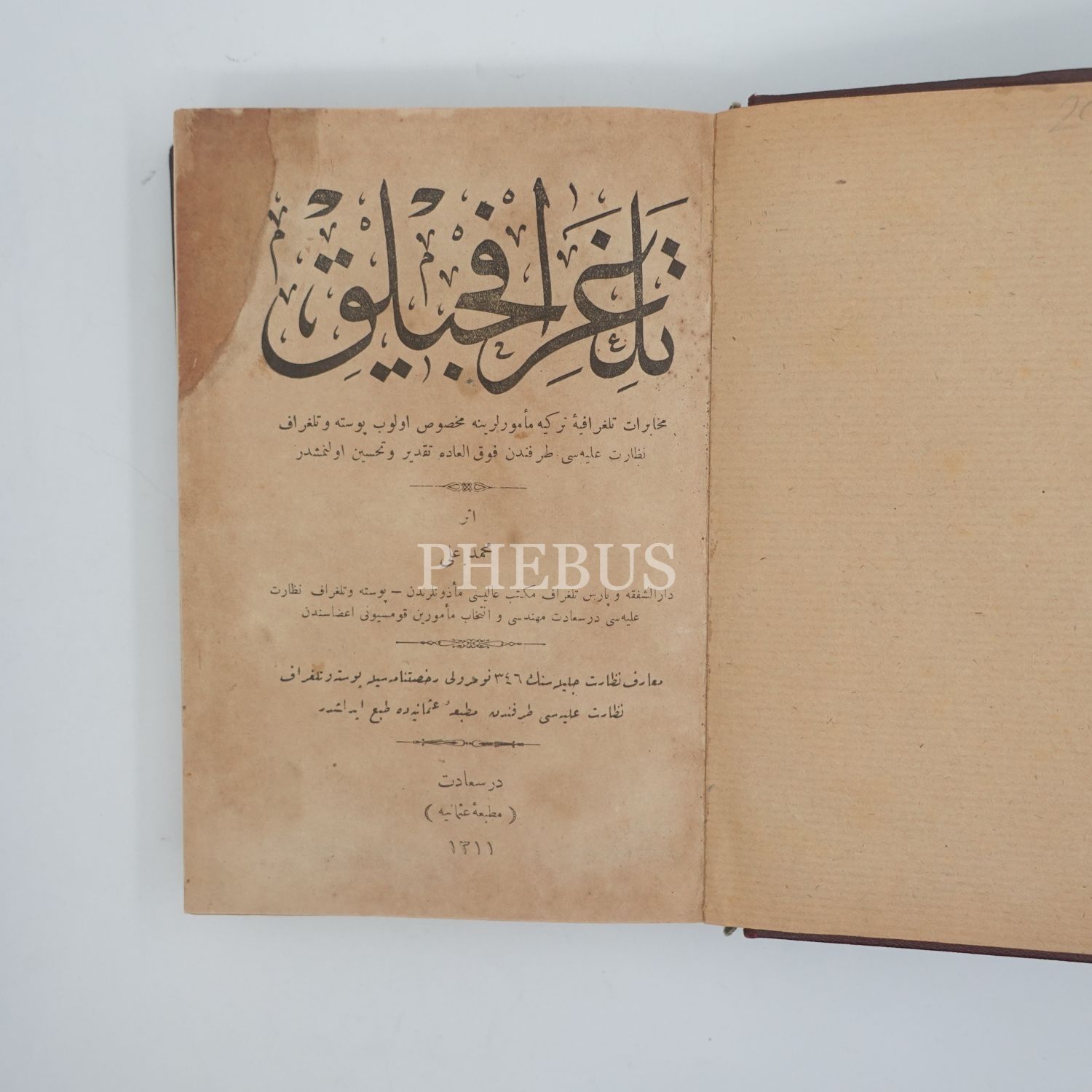TELGRAFÇILIK, Mehmet Ali, 1311, Matbaa-i Osmaniye, 398 sayfa, 19x13 cm...