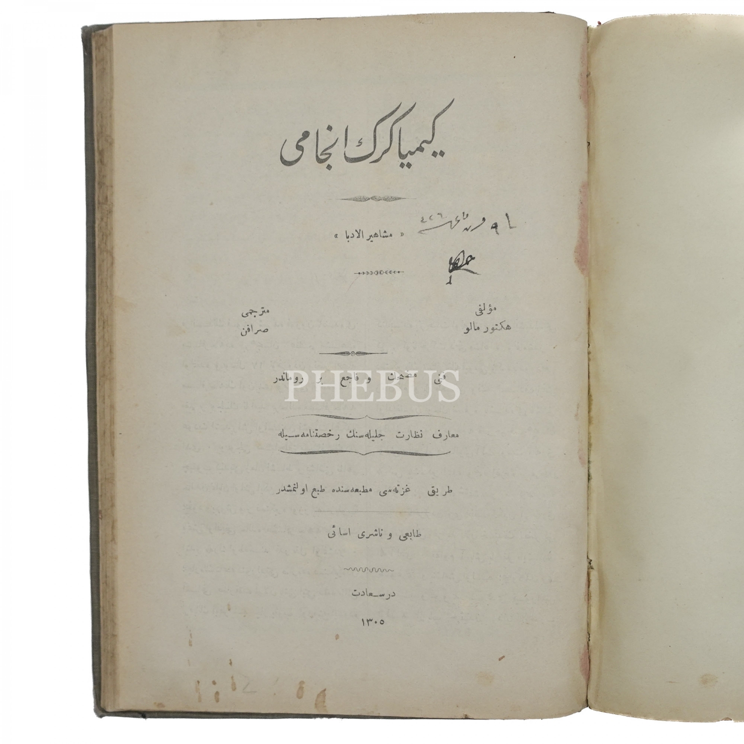 MUHAREBAT-I BAHRİYE-İ OSMANİYE, Süleyman Nutki, 1307, Bahriye Matbaası, 132 sayfa, KİMYAGERİN ENCAMI, Hector Malot, (Çeviren: Sarafen Lazyan), 1305, Tarik Gazetesi Matbaası, 158 sayfa, 19x26 cm...