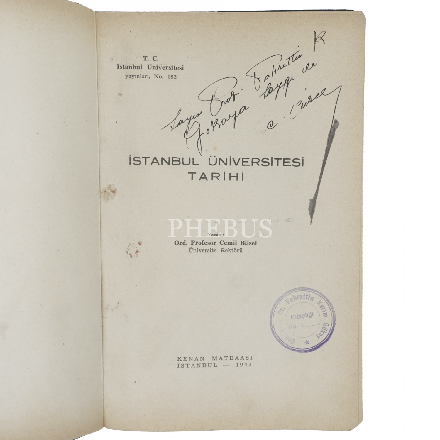 İSTANBUL ÜNİVERSİTESİ TARİHİ, Ord. Prof. Cemil Bilsel, 1943, Kenan Matbaası, 168 sayfa, 23x15 cm...