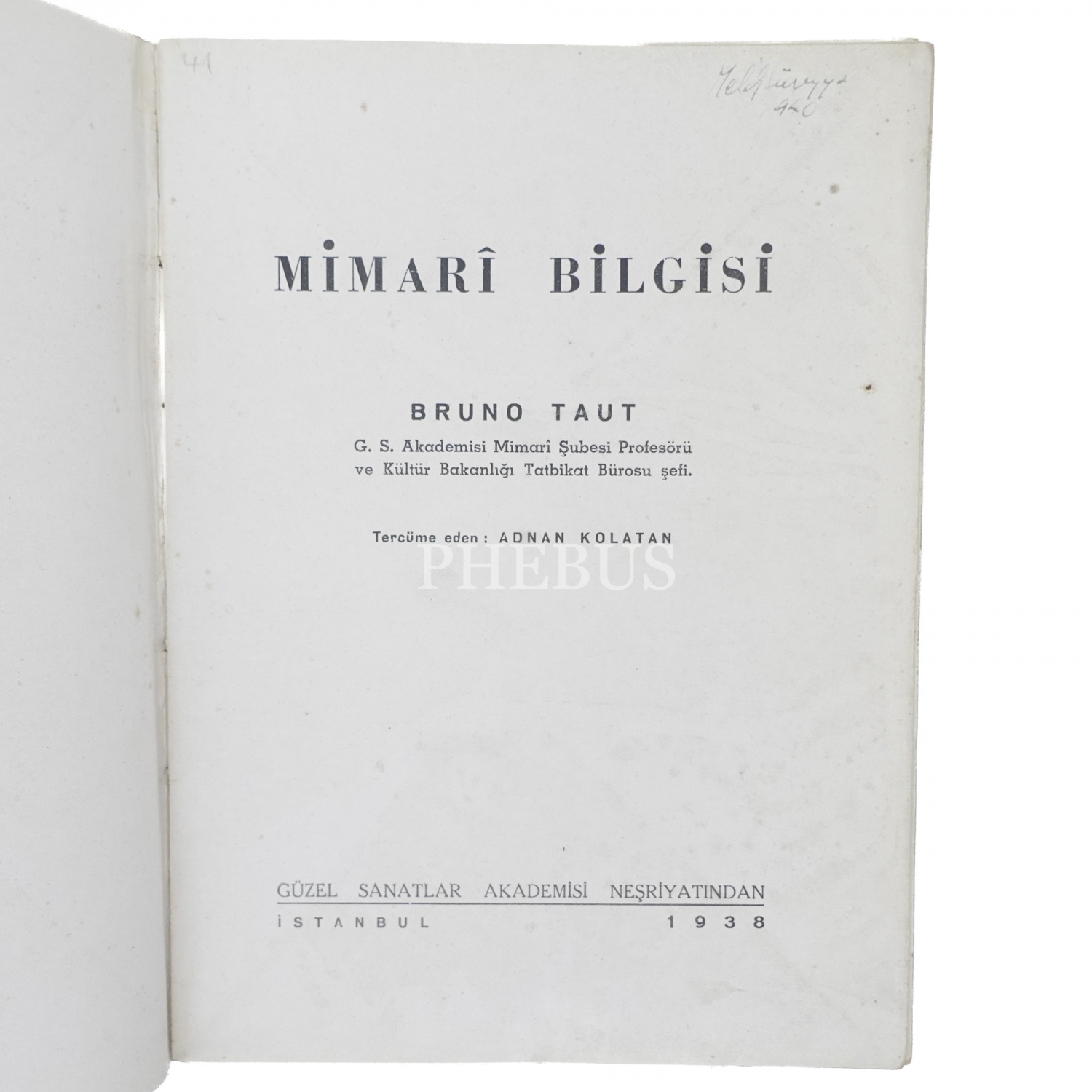 MİMARİ BİLGİSİ, Bruno Taut, 1938, 353 sayfa, 20x15 cm...
