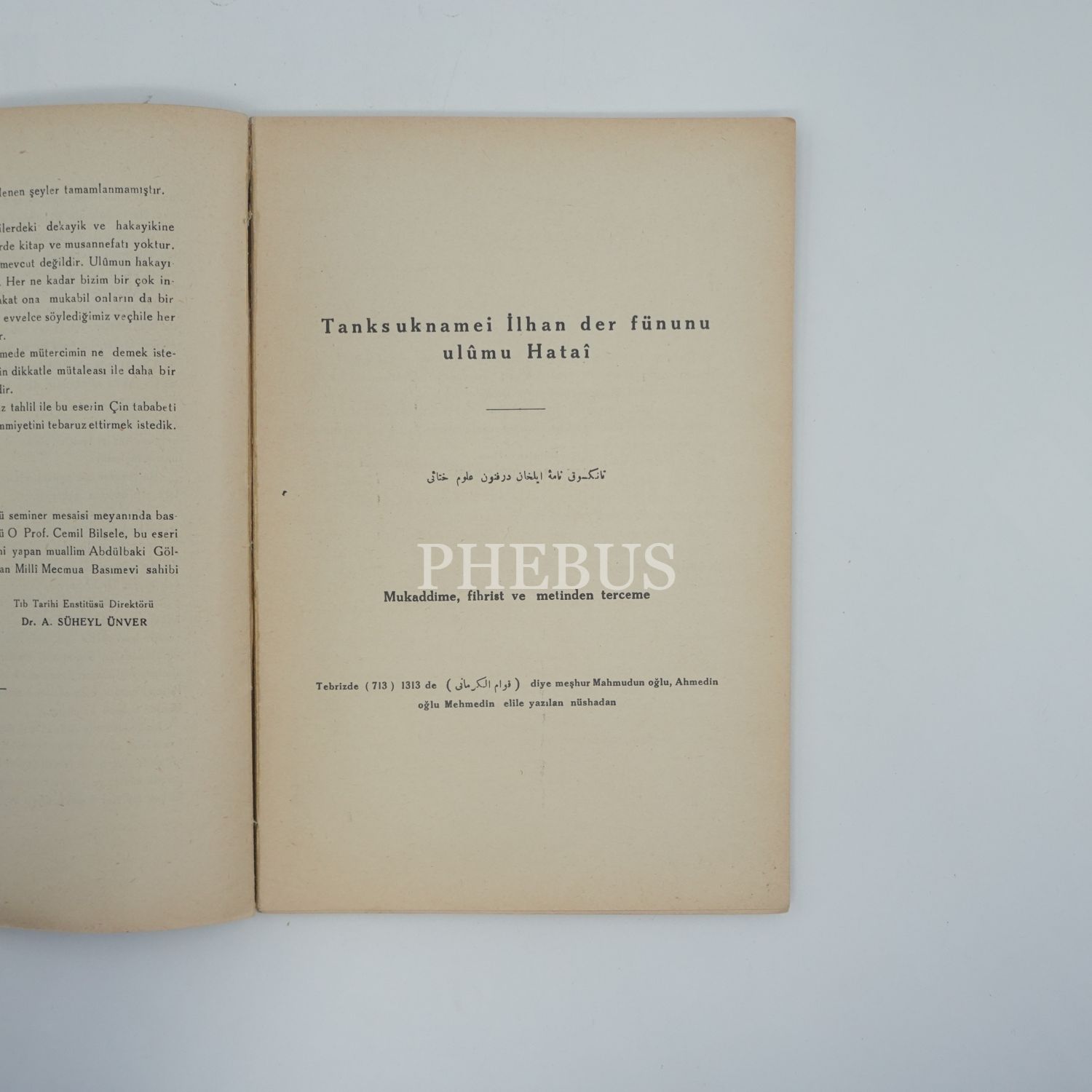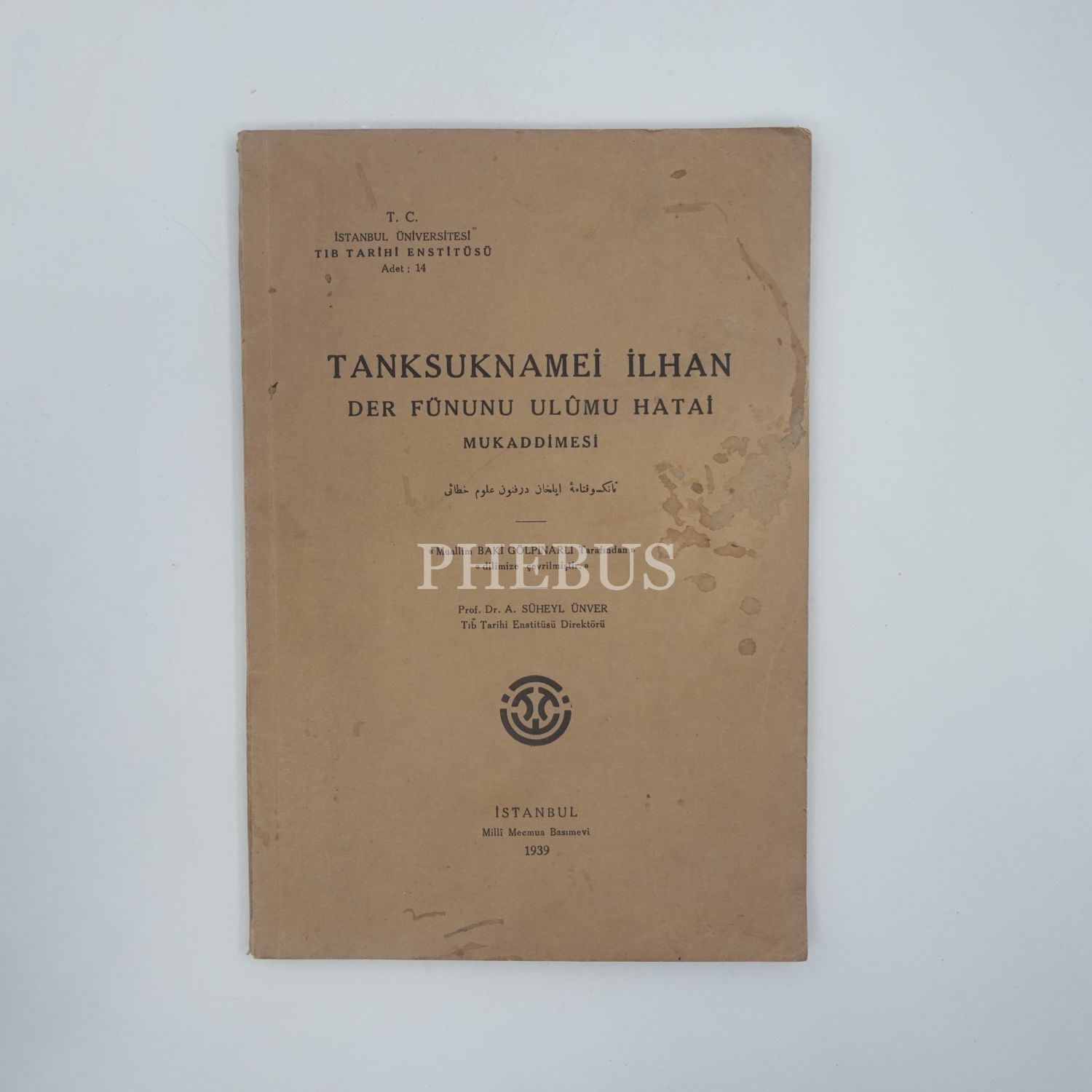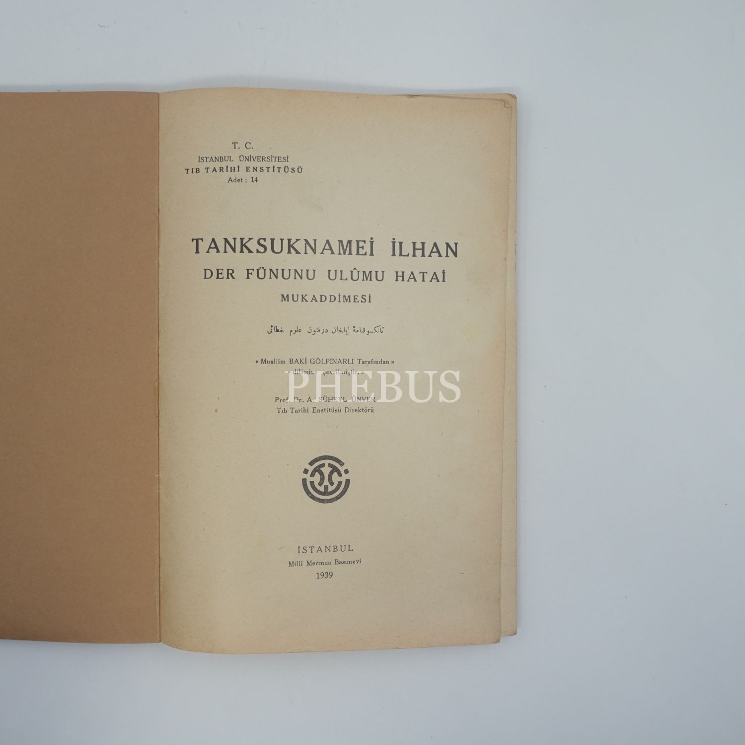 TANKSUKNAME-İ İLHAN DER FÜNÛN-I ULÛM-I HATÂÎ MUKADDİMESİ, (Çeviren: Abdülbaki Gölpınarlı), 1939, Milli Mecmua Basımevi, 72 sayfa + 16 sayfa görsel, 24x16 cm...