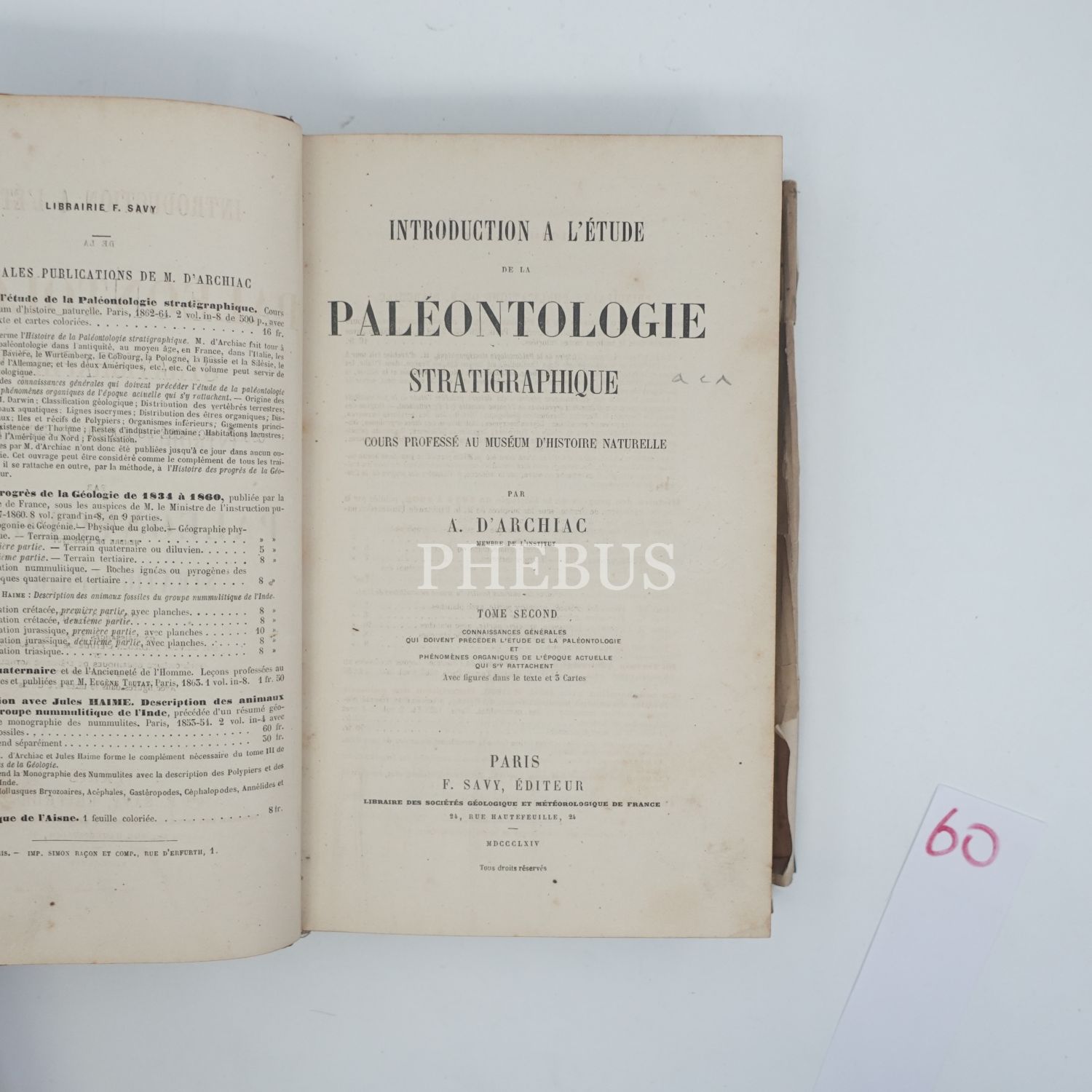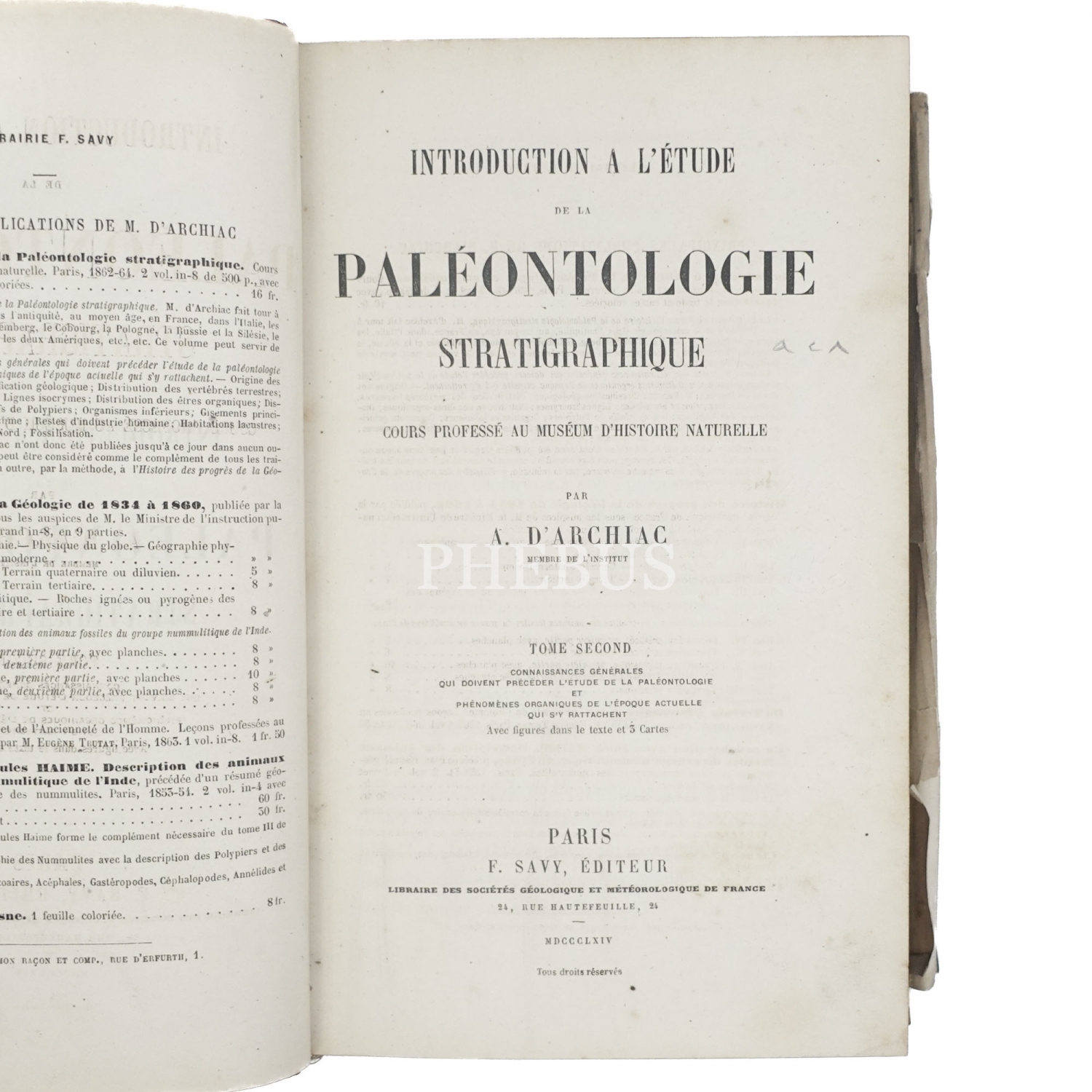 INTRODUCTION A L´ETUDE DE LA PALEONTOLOGIE STRATIGRAPHIQUE, A. d´Archiac, 1864, Paris, 2. cilt, 616 sayfa + 3 katlamalı sayfa harita, 22x13 cm...