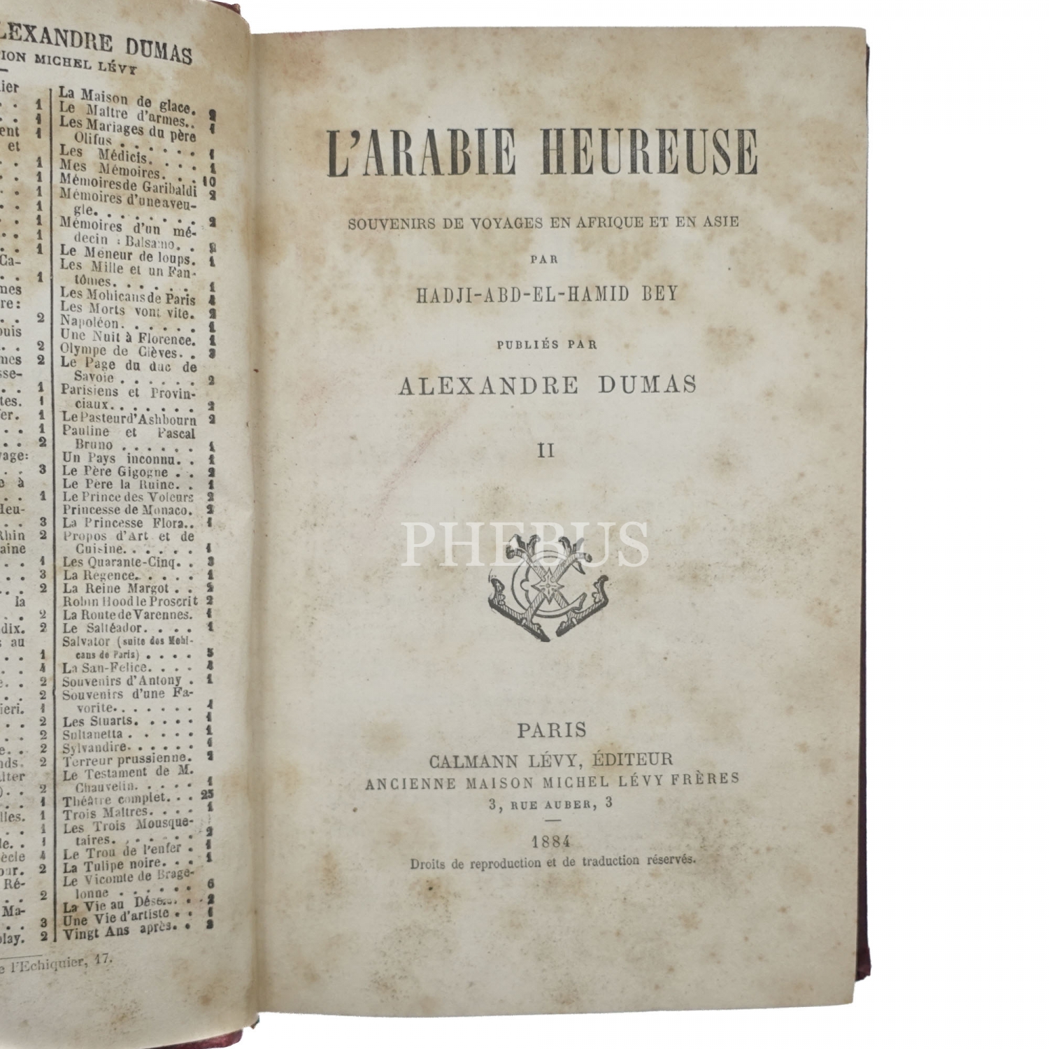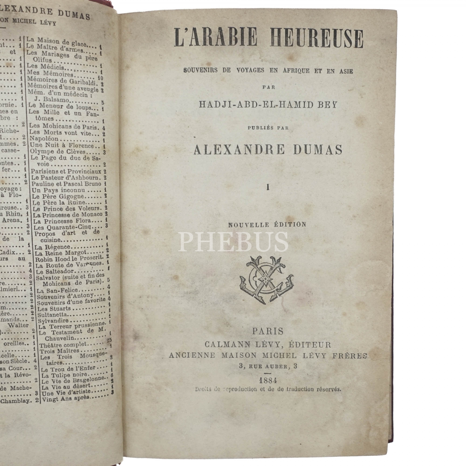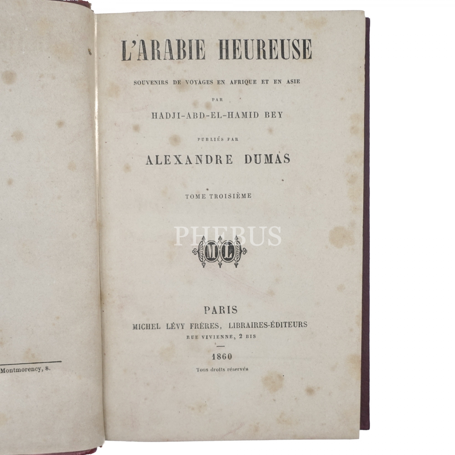 L´ARABİE HEUREUSE: SOUVENİR DE VOYAGES EN AFRIQUE ET EN ASIE PAR HADJI ABD-EL-HAMID BEY (3 cilt takım), Alexandre Dumas, 1860-1884, Calmann Levy (Paris), 12x18 cm...