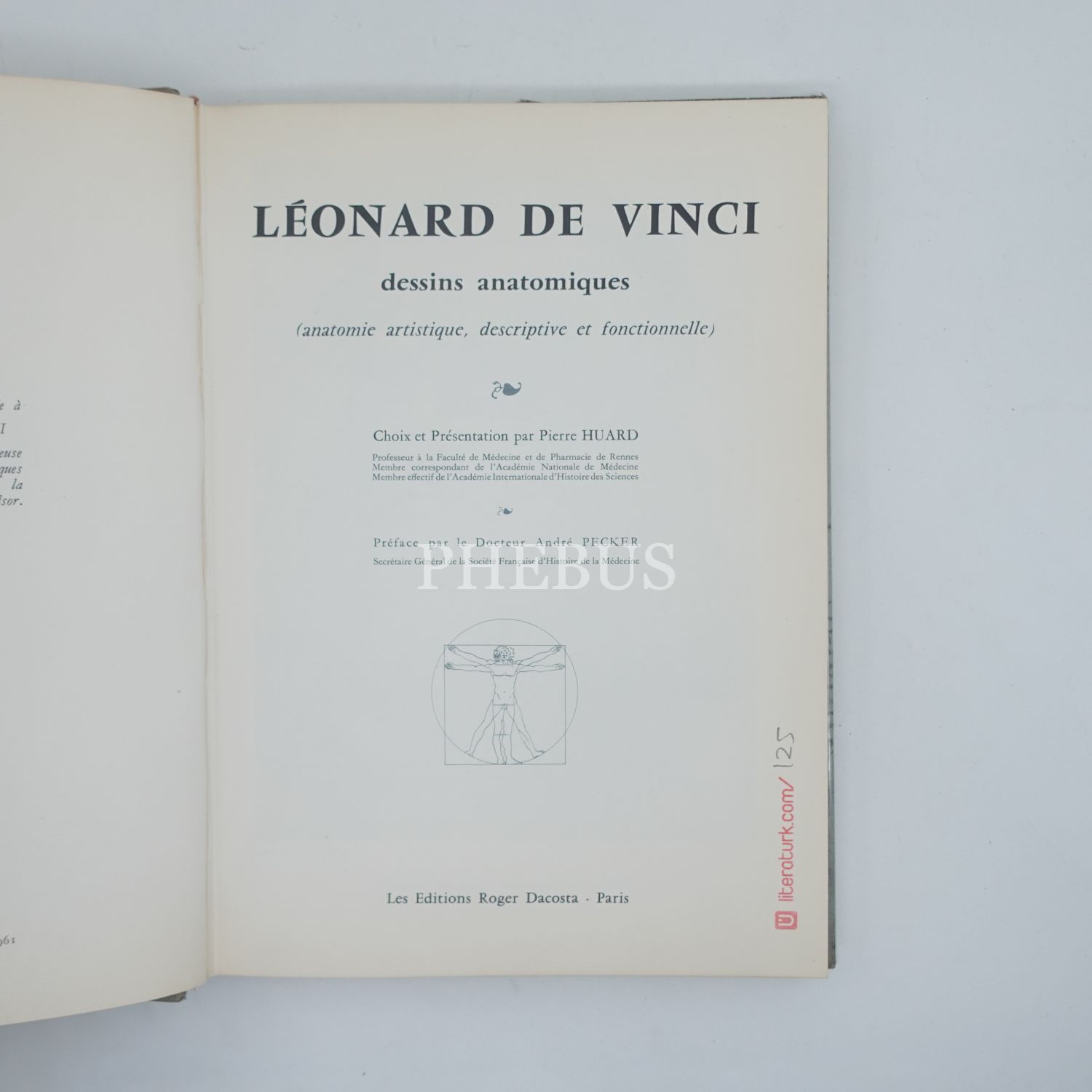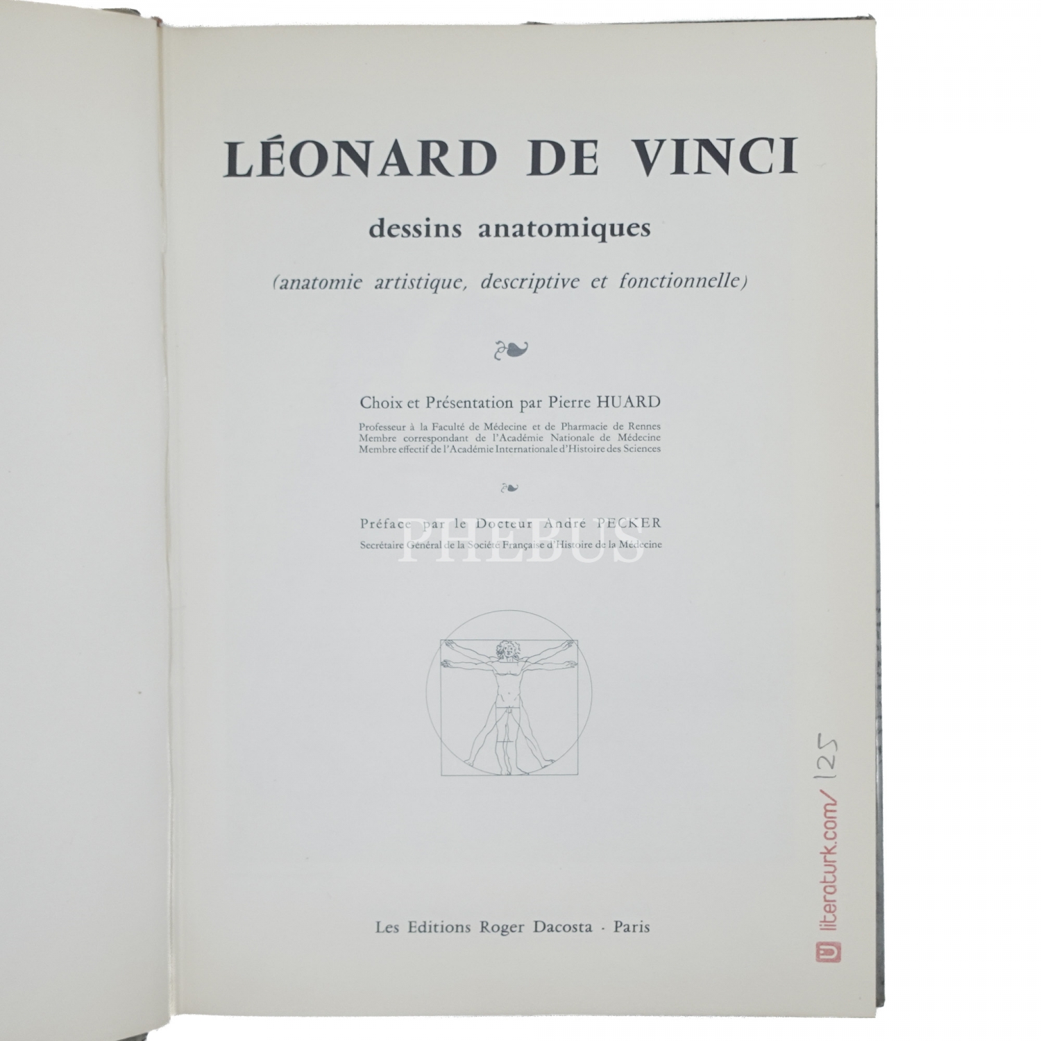 LEONARD DE VINCI DESSINS ANATOMIQUES, (Hazırlayan: P. Huard), 1961, Paris, 205 sayfa, 27x19 cm...