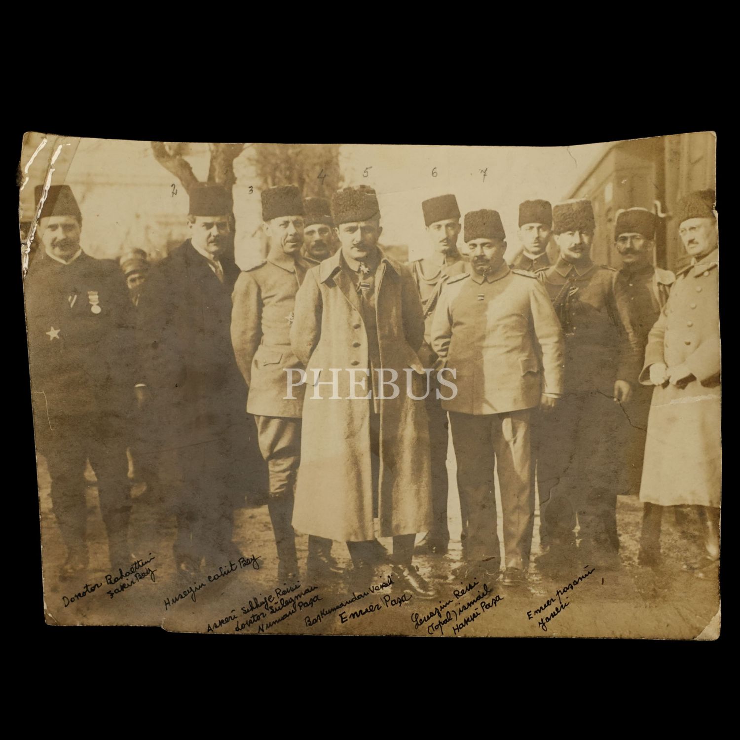 Harbiye Nazırı Enver Paşa, yaveri, Bahaeddin Şakir, Hüseyin Cahit Bey, Süleyman Numan Paşa ve Topal İsmail Hakkı Paşa bir arada, 1916, 19x14 cm...