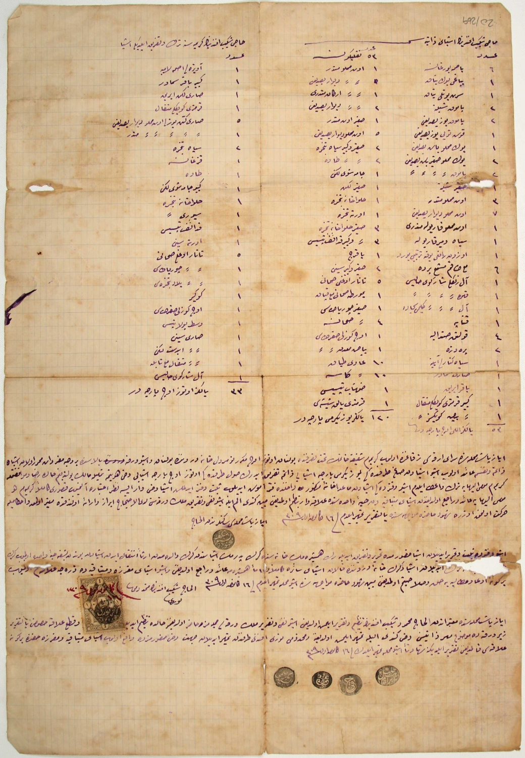 Osmanlıca Ayaspaşa mahallesi Saray Arkasında ikamet eden Hacı Şekip Efendi'ye ait tereke kaydı, 33x50 cm