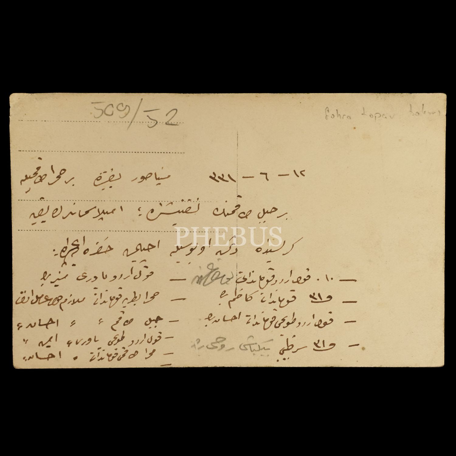 Fotoğrafın arka yüzünde olay hakkına kaleme alınmış Osmanlıca bir açıklama ve fotoğrafta bulunan askerlerin isimleri yazılıdır.