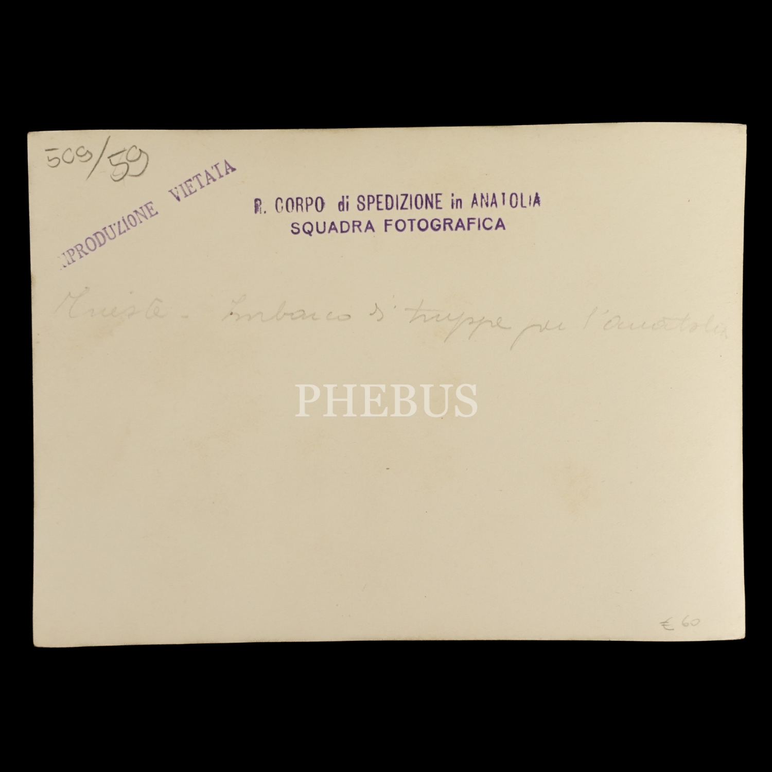 Arka yüzü İtalyanca "Anadolu Seferi Kuvvetleri Fotoğraf Ekibi (R. Corpo di Spedizione in Anatolia Squadra Fotografica)" kaşelidir.