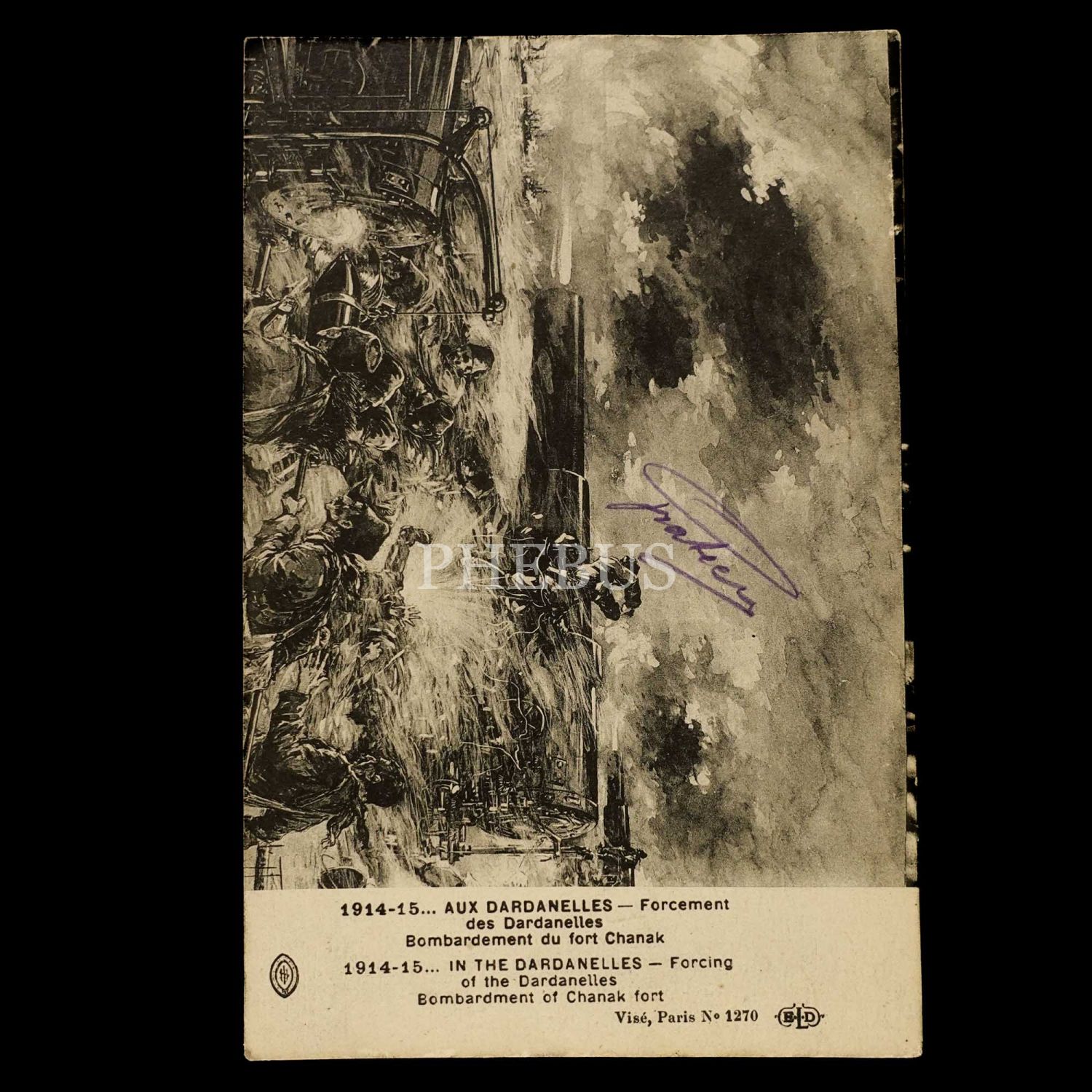 Düşman donanmasını Çanakkale Boğazı'nda gösteren kartpostal, Dardanelles, 1914-1915, 14x9 cm...