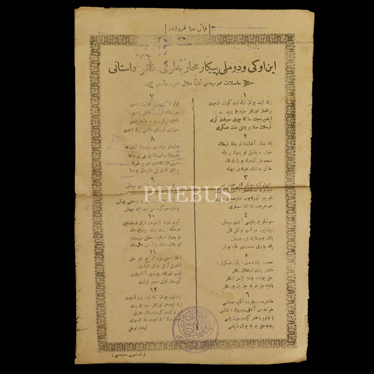 Avşaroğlu´nun kaleme aldığı, "İnönü ve Dumlupınar Muharebeleri Zafer Destanı" başlıklı afiş, Kastamonu Matbaası, 20x31 cm...