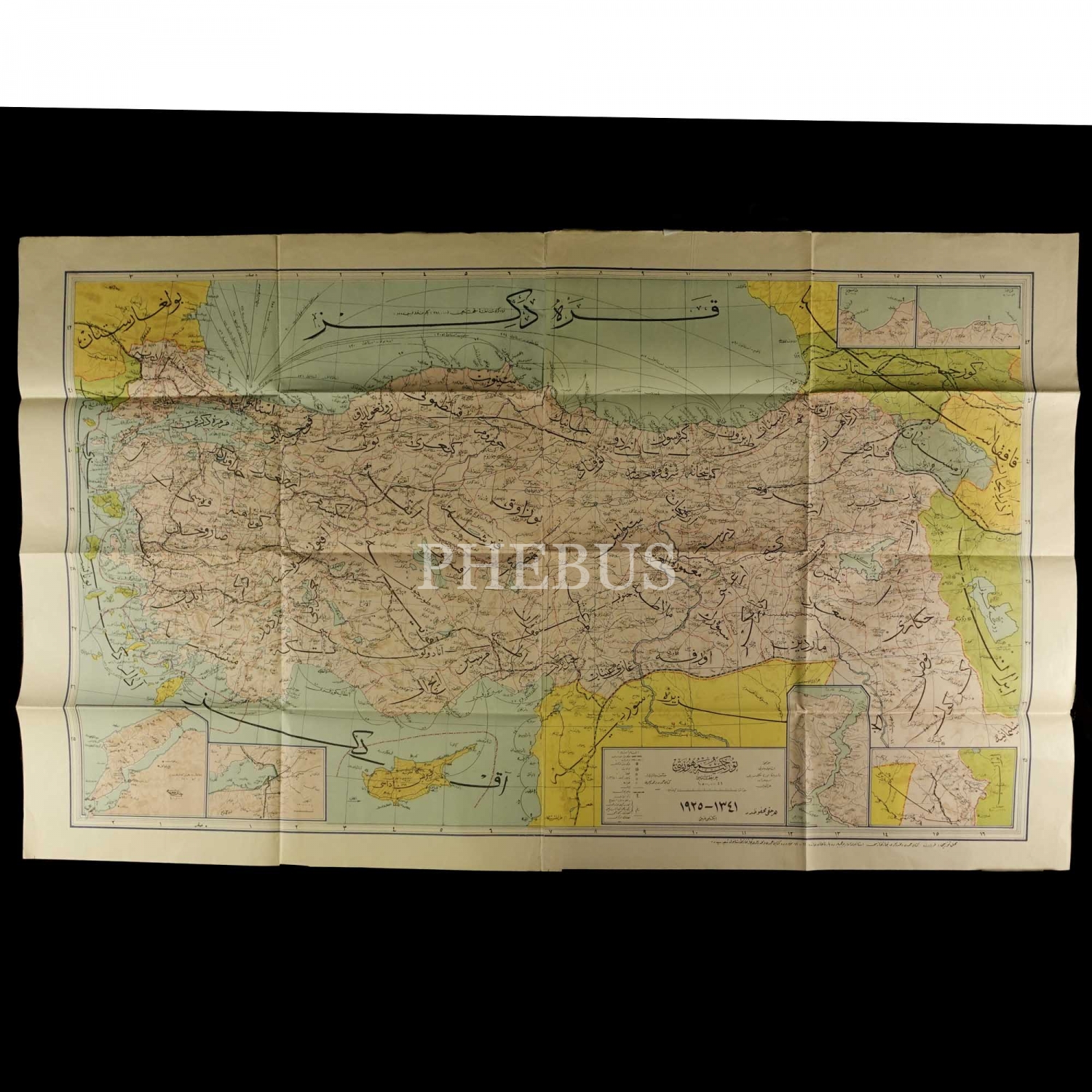 Osmanlıca Türkiye Cumhuriyeti Haritası, 1925, 130x79 cm...