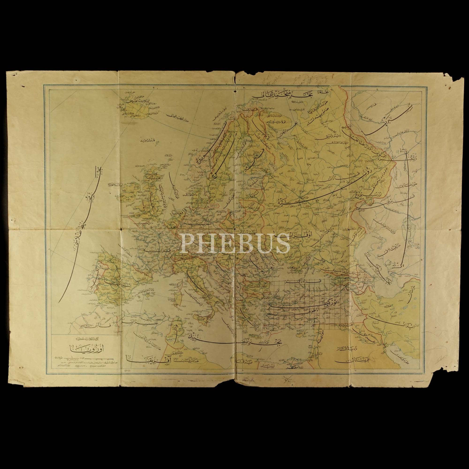 Kitabhane-i İkbal´in yayımladığı "Yeni Teşekkülata Göre Avrupa" başlıklı harita, 1923, 57x81 cm...