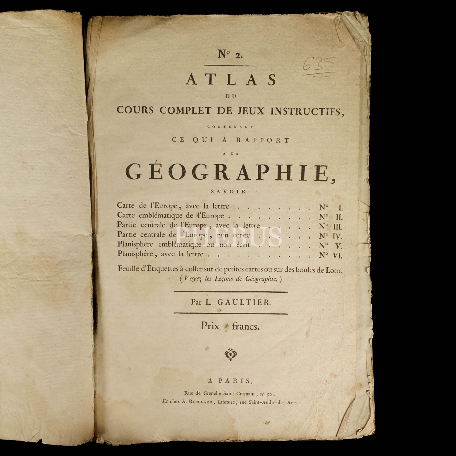 GEOGRAPHIE, L. Gaultier, A. Renouard, Libraire, 27x40 cm...