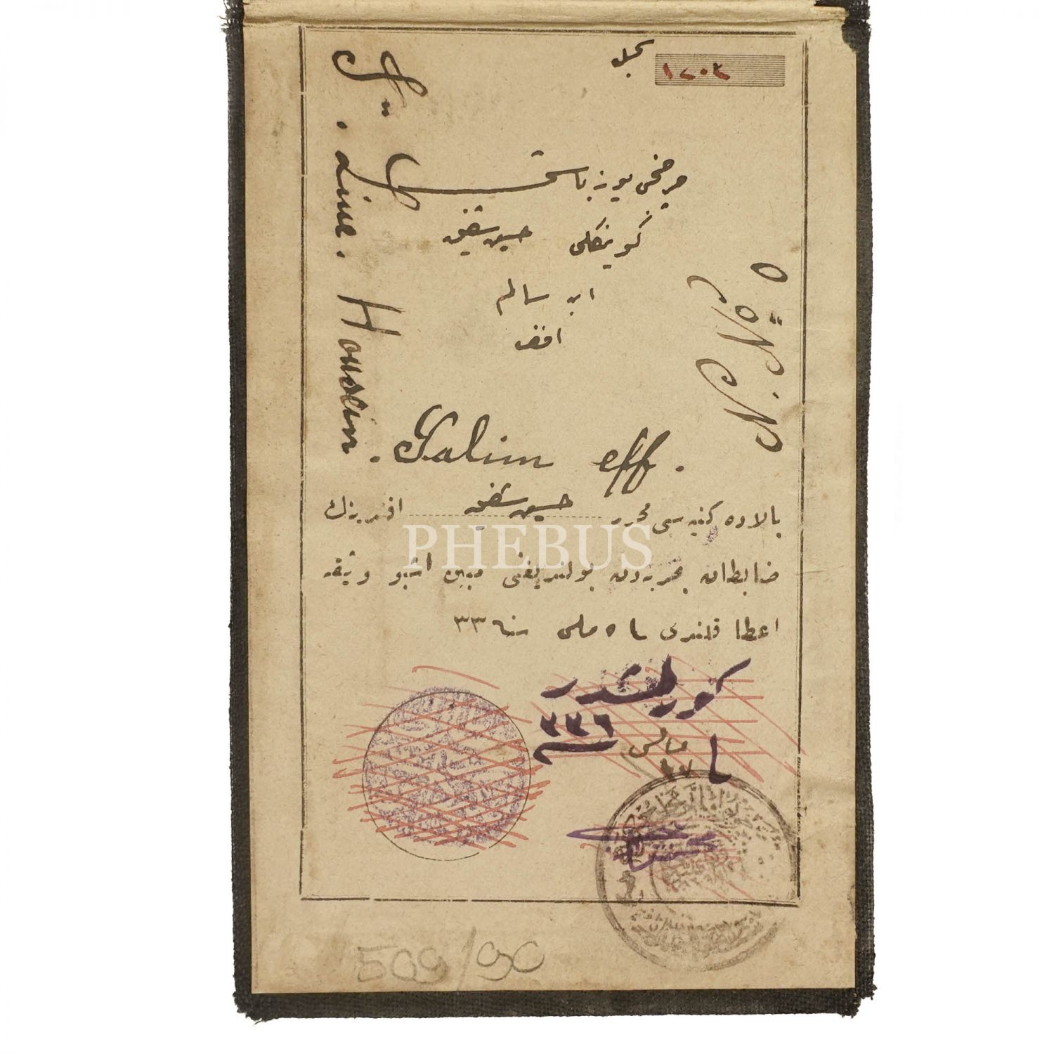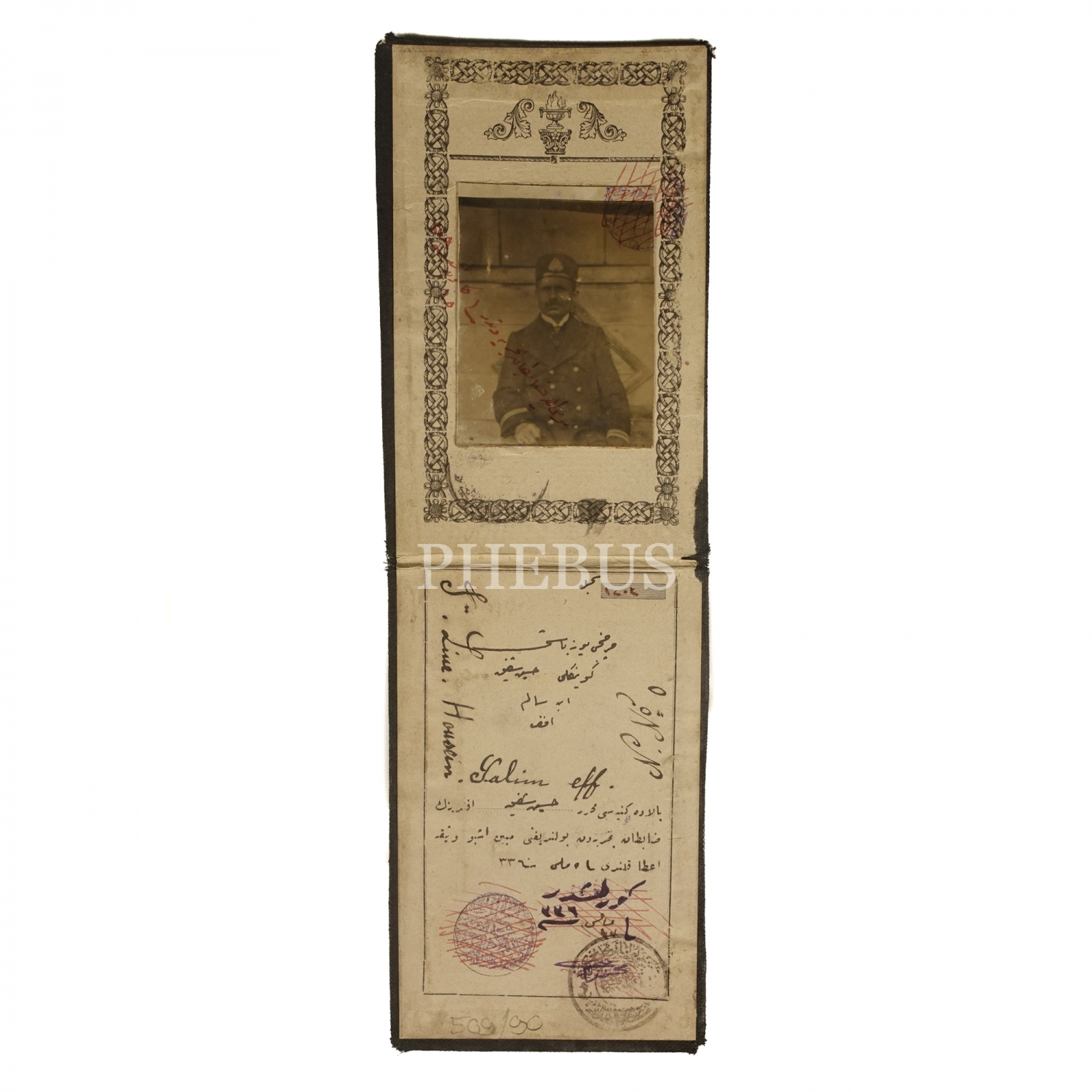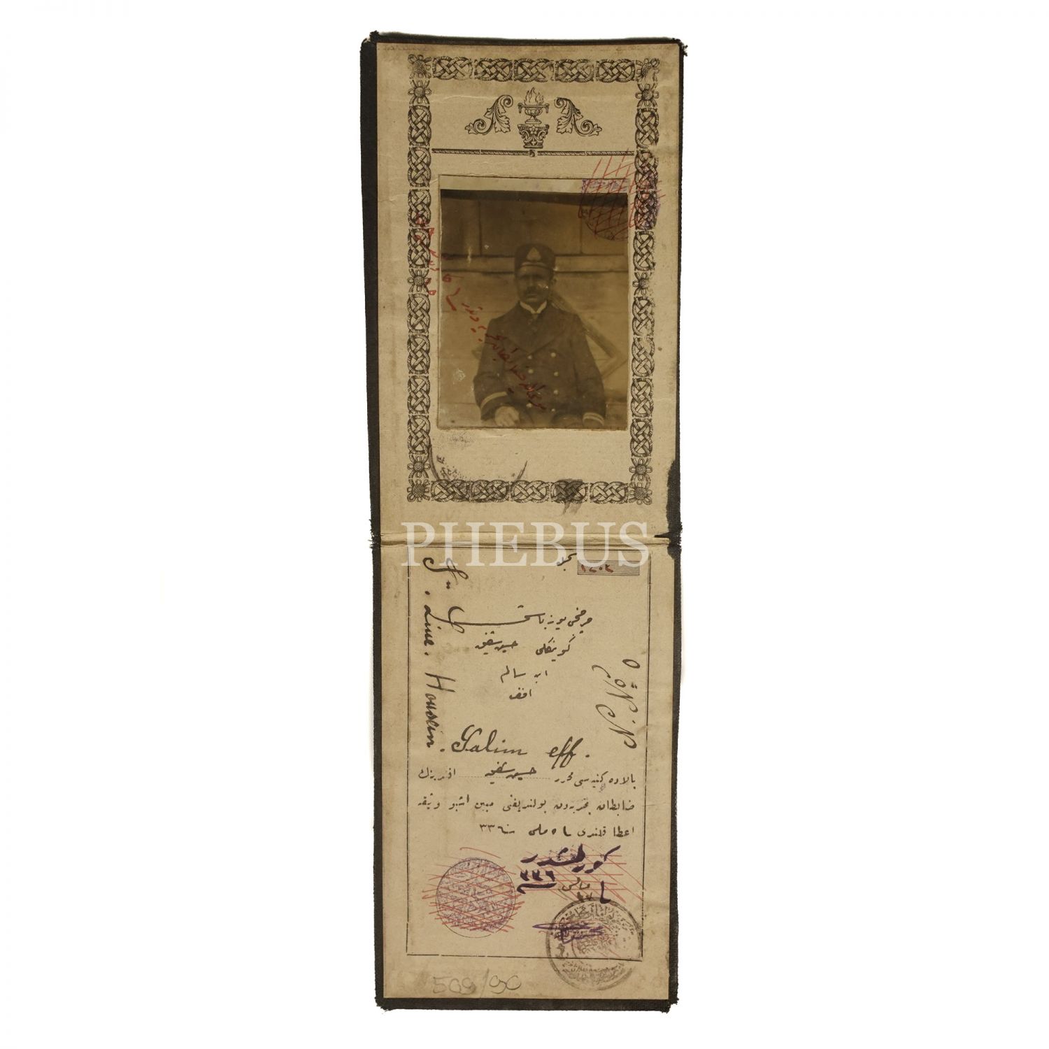 Çarhçı Yüzbaşı Hüseyin Şefik Efendi´nin Zabıtan-ı Bahriye kimlik kartı, 28x9 cm...
