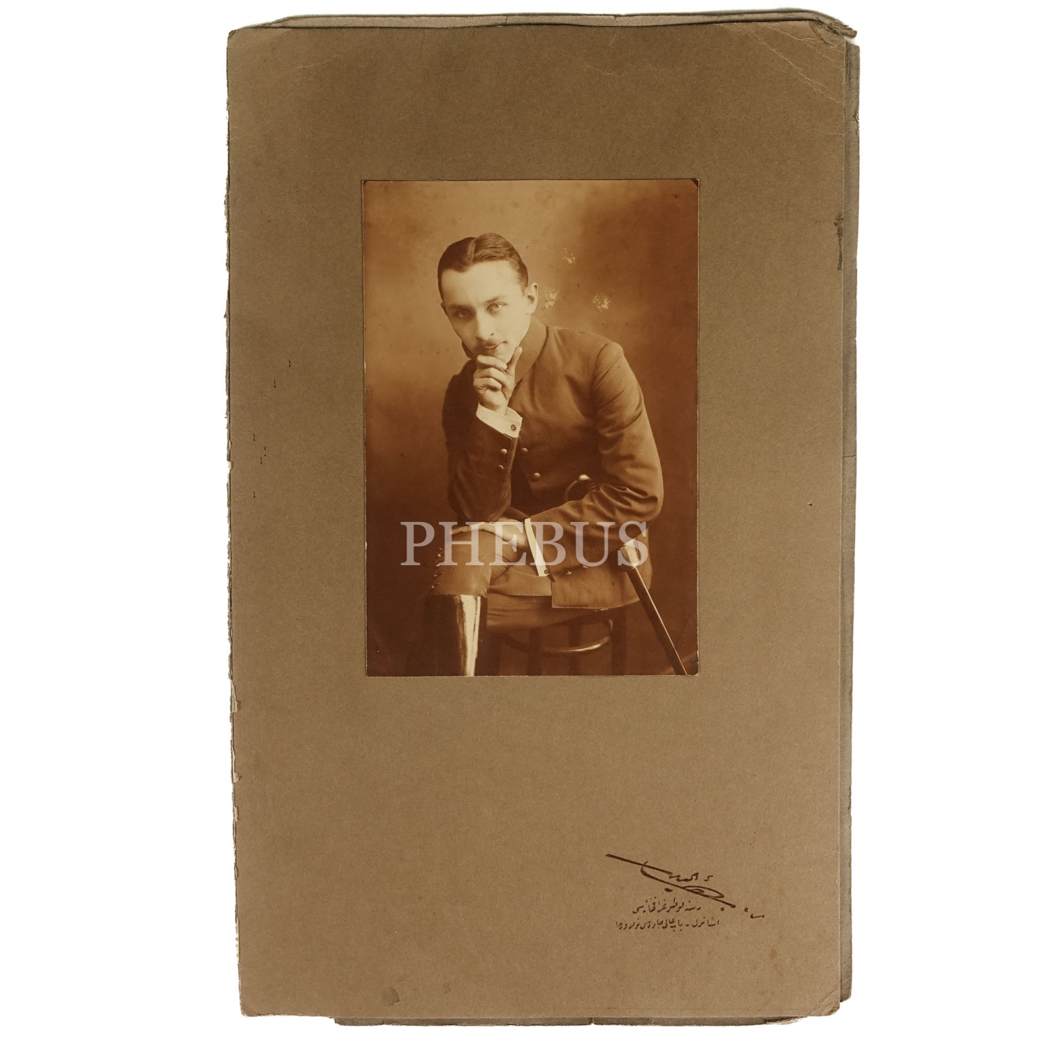 Subay üniformalı bir beyefendinin, Resne Fotoğrafhanesi´nde aldırdığı hatıra fotoğrafı, fotoğraf 10x14 cm, paspartu 18x29 cm...