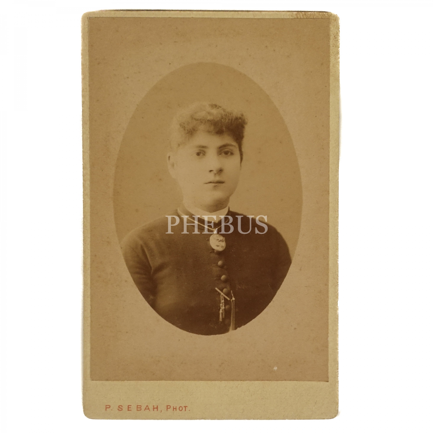 Bir hanımefendinin, Pascal Sebah Fotoğrafhanesi´nde (Grand Rue de Pera, Constantinople) aldırdığı kartvizit boy (CDV) hatıra fotoğrafı, 7x11 cm...