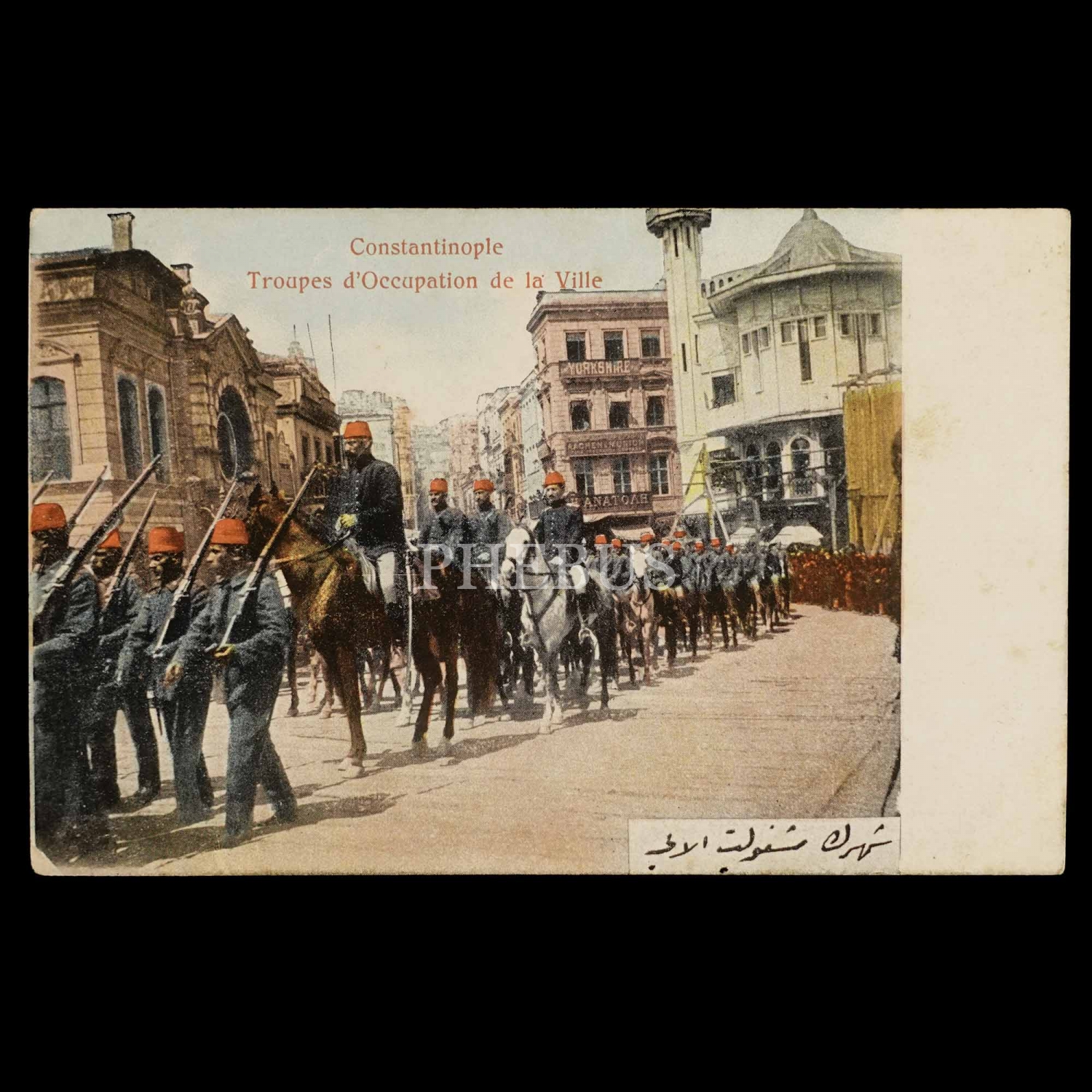 Hareket Ordusu İstanbul´da, "Constantinople - Troupes d´Occupation de la Ville / Şehrin meşguliyet alayı", 14x9 cm...
